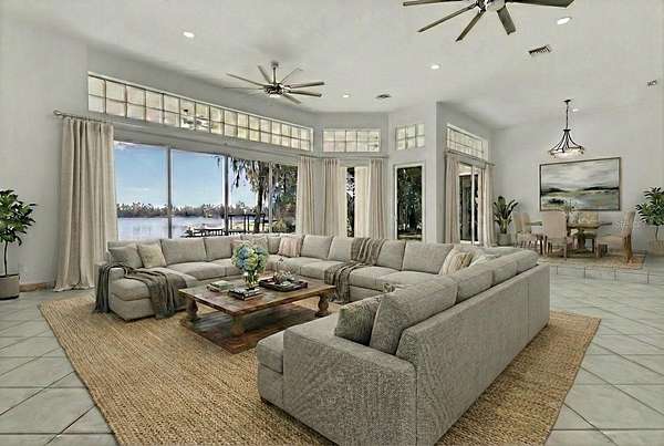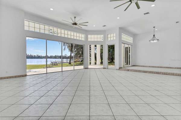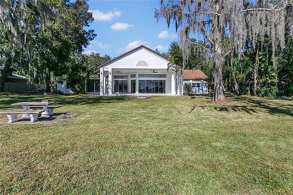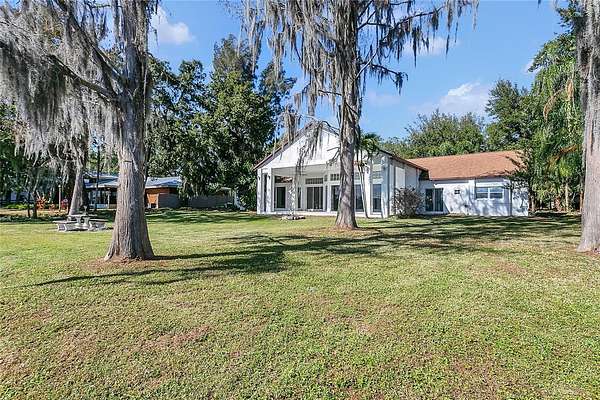 One or more photo(s) has been virtually staged. Set behind a long, tree-lined approach, this lakefront estate sits on nearly two private acres along Lake Mary Jess, a rare 60+ acre, spring-fed, skiable lake with a slalom course and calm open water. With 130 feet of south-facing frontage, sweeping views, and a quiet sense of arrival, the setting is immediately different -- private, expansive, and difficult to replicate at any price point. The home offers over 4,000 square feet of space defined by scale, light, and flexibility, with high ceilings, oversized windows, and lake views woven throughout the main living areas and primary suite. A separate mother-in-law suite adds valuable versatility, while the long dock with covered section creates a direct, understated connection to the water. This is a property where the location and layout do the heavy lifting; offering the opportunity to elevate an already exceptional estate without compromising what makes it truly special.