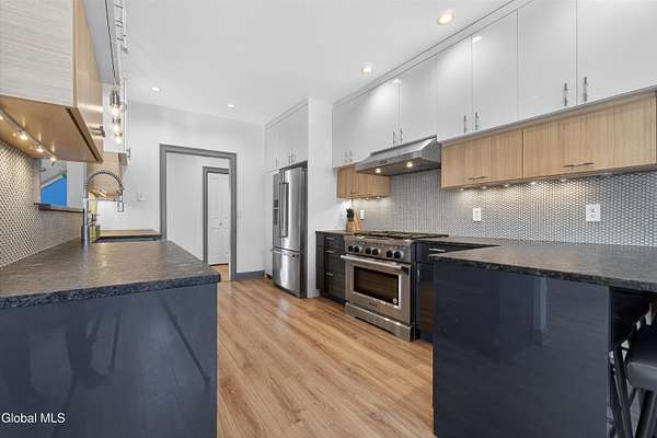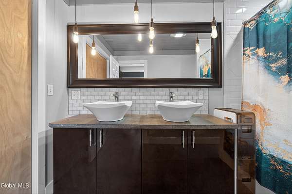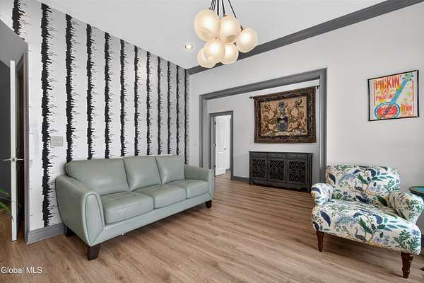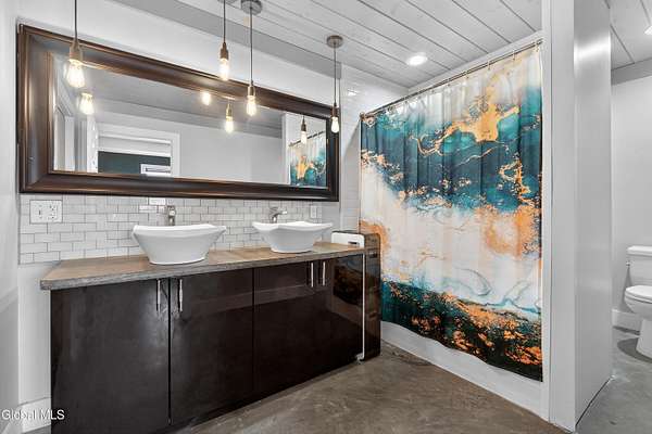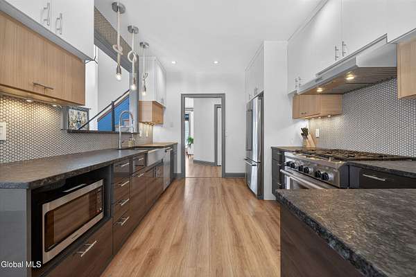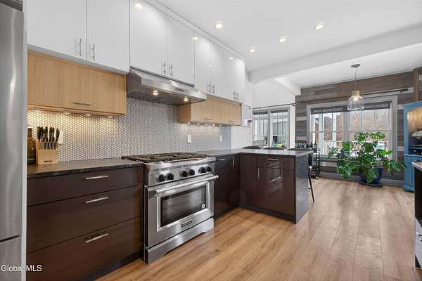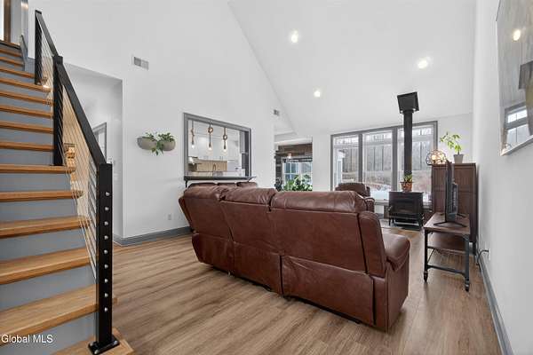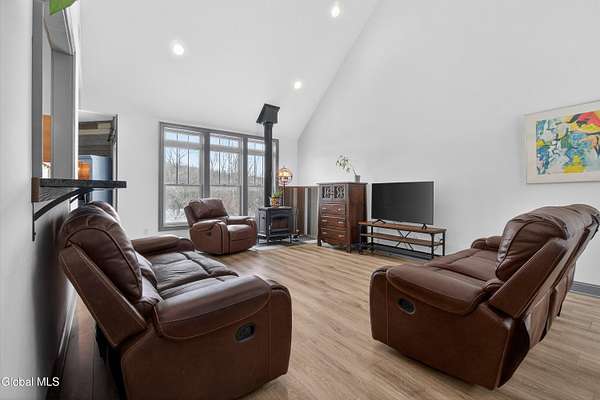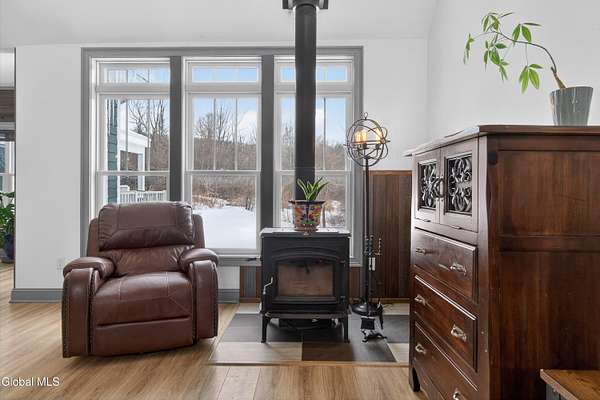 Set on 4.5 private acres, this exceptional 6-bedroom, 5-bath home offers three full stories of beautifully updated living space. The main level features a formal dining area and an open living room with soaring cathedral ceilings and a cozy woodstove, creating a warm and inviting focal point. Adjacent, the modern kitchen is equipped with KitchenAid stainless steel appliances, leathered granite countertops, and ample cabinet space for effortless organization. An additional space just off the kitchen provides the perfect breakfast nook or relaxed sitting area. The spacious primary suite serves as a private retreat, complete with a seating nook, walk-in closet, and a luxurious bath featuring a soaking tub and tiled shower. Upstairs, three generously sized bedrooms and a full bath provide comfortable accommodations for family or guests. The finished basement functions as an ideal in-law suite, offering two bedrooms, two full baths, a living area, and a fully equipped kitchen. With direct access to a covered deck overlooking the expansive backyard, this level provides privacy and versatility for extended stays or multi-generational living. Outside, enjoy peaceful surroundings from the covered deck or gather around the firepit for memorable evenings under the stars--all set within the privacy of your own 4.5-acre retreat.