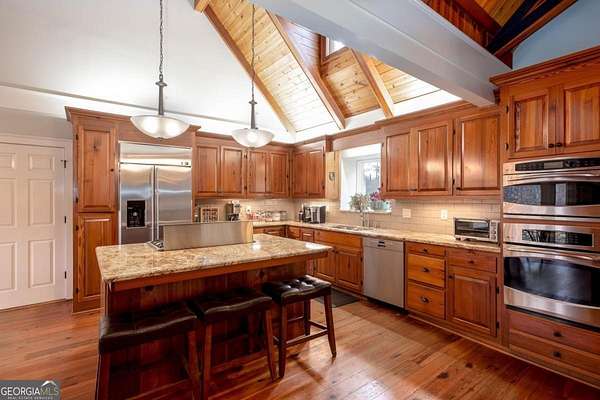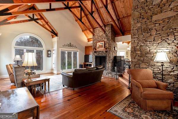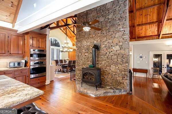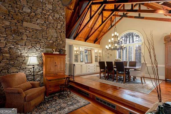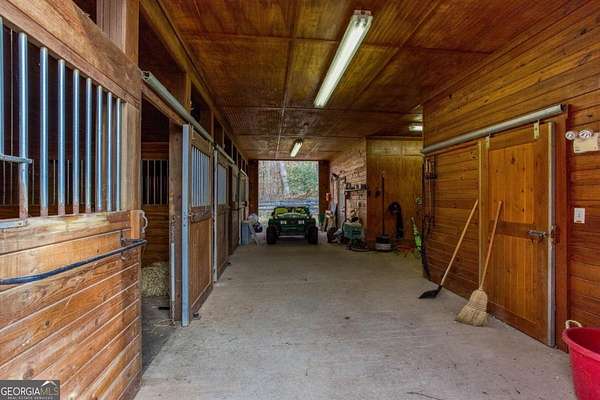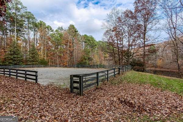 Amazing opportunity to own a 27+ acre equestrian/gentleman farm in the heart of SE Cherokee County mere minutes from Milton. This estate presents lush fenced pasture, rolling mature hardwoods and a spring fed pond. The equestrian amenities provide; a fenced riding arena and a cypress barn with three stalls and a 12'x14' shavings room that can be converted to an additional stall. The house is wrapped in cypress and fieldstone and provides a whole house generator as well as a geothermal HVAC system to keep utility costs down. The property has two drilled wells; one for the house and another at the barn. Step inside of the home to an open concept living/dining/kitchen/breakfast rooms. Bright natural light pours through the expanse of windows and the privacy offered gives no reason to cover them. Heart pine floors below and soaring exposed beams in the 2 story ceilings. Floor to ceiling stacked fieldstone masonry fireplace, wood stove and stove insert in the master allow for natural wood heat if desired. The large mudroom has handsome brick paving for the floors. A partial finished space above the garage provides a great place for a craft room, play space, or extra storage. Step out on the Brazilian hardwood back deck to view a large portion of the property including the private pond that recently had the spillway updated and replaced, landscaping and abundant wildlife. This property is for those that want privacy and a rural feel, yet want to be very close to great shopping, dining, parks and school systems. The property also qualifies for and is currently in conservation with the county for considerable tax benefits.
