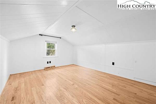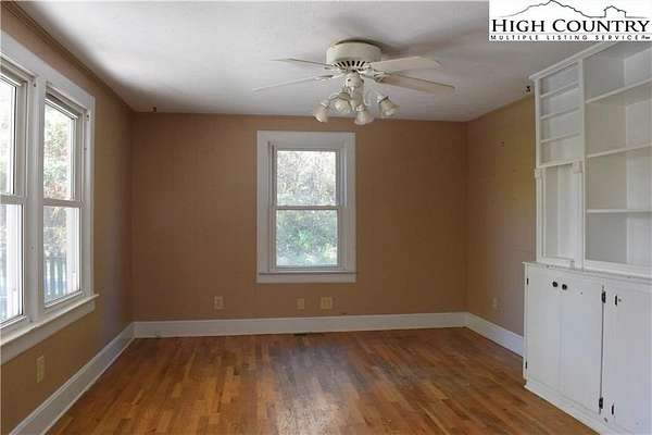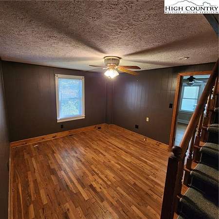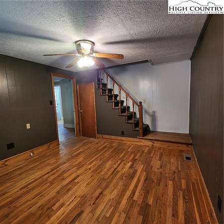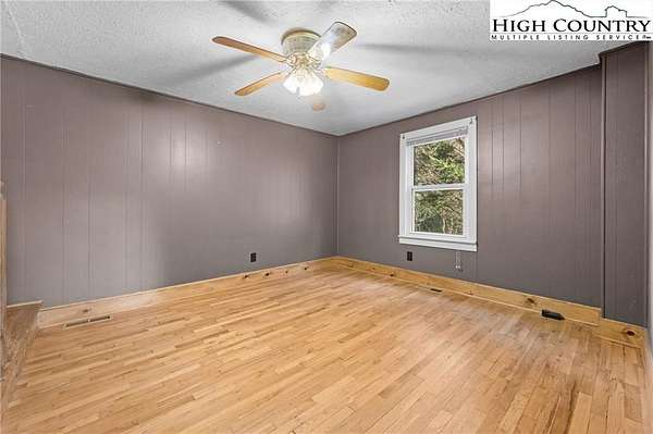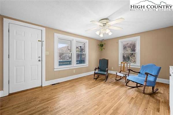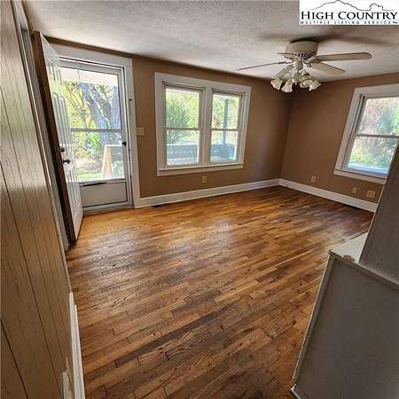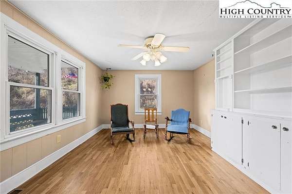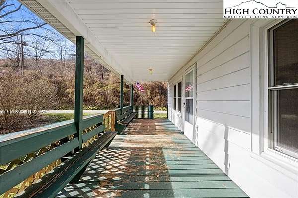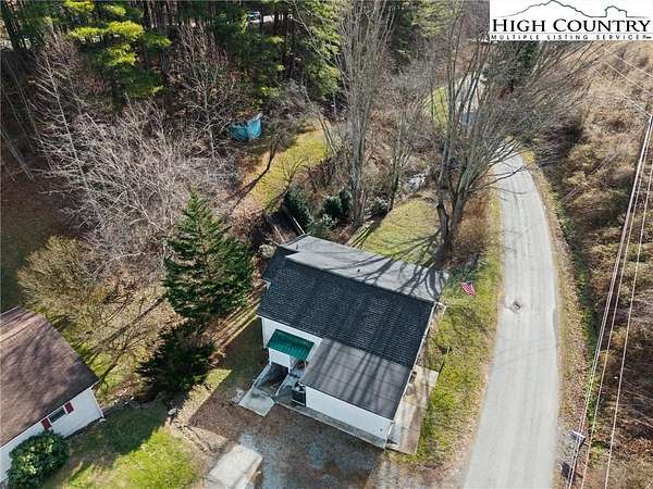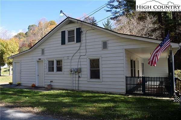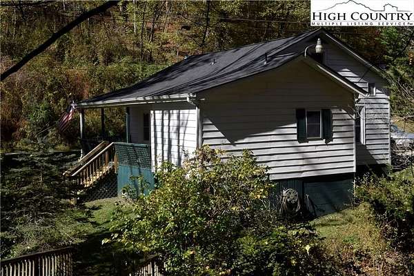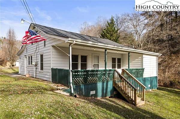 Charming farmhouse with a covered porch overlooking a year-round creek, flat yard, and mature trees--just 10 minutes to Boone! Enter through a large mudroom and laundry area into the spacious kitchen. The living room is accessible from the kitchen or the side covered porch. Off the living room is the primary bedroom, featuring a giant closet and a full, newly renovated bathroom. An additional bedroom/office/miscellaneous room connects to the primary bedroom and leads to a staircase up to a loft with a half bath and two small rooms.