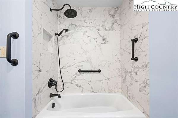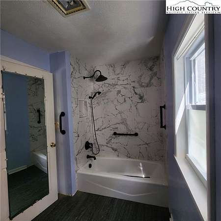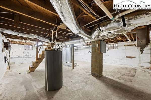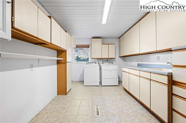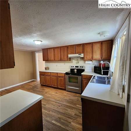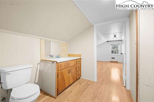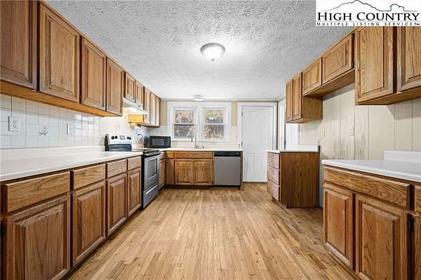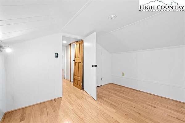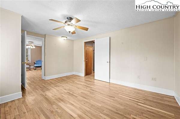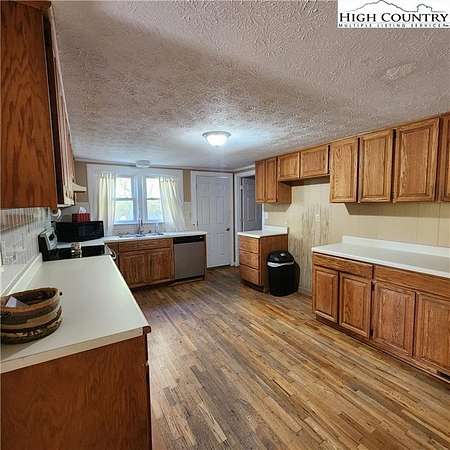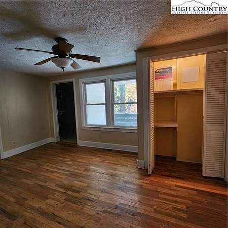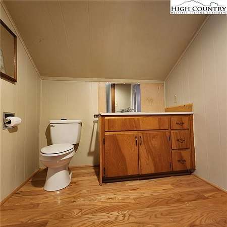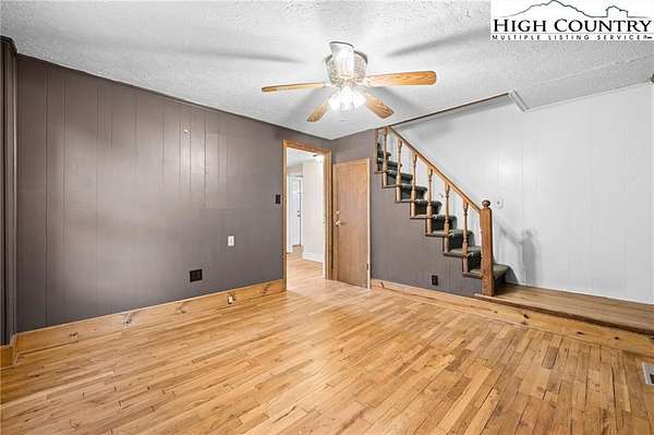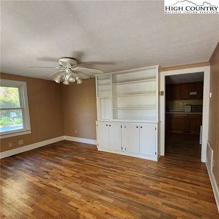 Charming farmhouse with a covered porch overlooking a year-round creek, flat yard, and mature trees--just 10 minutes to Boone! Enter through a large mudroom and laundry area into the spacious kitchen. The living room is accessible from the kitchen or the side covered porch. Off the living room is the primary bedroom, featuring a giant closet and a full, newly renovated bathroom. An additional bedroom/office/miscellaneous room connects to the primary bedroom and leads to a staircase up to a loft with a half bath and two small rooms.