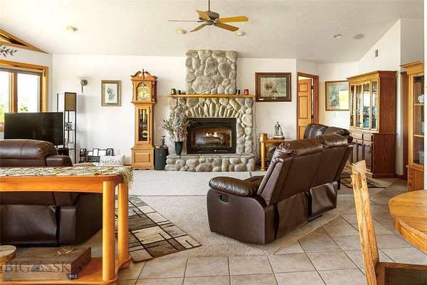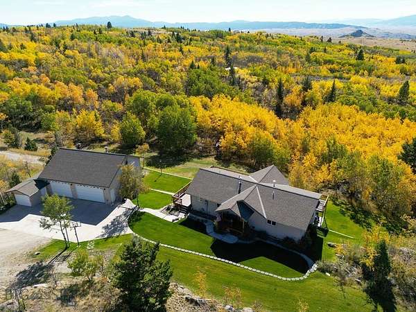 Welcome to your private Montana escape! Nestled on 16.93 acres of beautifully treed landscape, this 2,880 sq. ft. home blends space, comfort, and craftsmanship. With 4 bedrooms and 2.5 baths, the all-wood interior was custom-built by a master craftsman, creating warmth and elegance throughout. The property is designed for both living and entertaining: enjoy stunning mountain views from the expansive deck, or gather in the basement, already plumbed for a wet bar. A true standout feature is the 5-car garage and shop. Plumbed for in-floor heat and a bathroom, it includes a dedicated wood shop and upstairs guest quarters, also plumbed for water-ideal for visitors, extended family, or even an Airbnb. An attached storage unit provides extra room for tools and toys. Modern comforts include an air exchange system, reverse osmosis, radon mitigation, and a full alarm system. And now with a newly paved road, access to this serene property is easier than ever. Love playing outside? Moulton Reservoir Nordic Ski trails are just down the road; perfect for winter-time fun, or hiking in the warmer months!