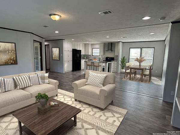 Nestled on 5 beautiful acres, this 2021 manufactured home offers the perfect blend of comfort and country living. With an open-concept, spilt bedroom design, the home features three spacious bedrooms, two full bathrooms, & a versatile office/flex room that could be a 4th bedroom. The kitchen & living areas flow seamlessly, creating a warm & inviting space for gatherings. A convenient utility room includes a washer & dryer, both of which, along with the refrigerator, will convey with a fair offer. Surrounded by mature trees & wooded areas, the property provides privacy, shade, and a serene natural setting. Whether you're looking for a peaceful retreat or the perfect place to start your homestead, this well-kept home on acreage is ready to welcome its next owner. There are a few extras on the property such as a carport in the back, chicken coop, and access to water for fishing. This home has never flooded per sellers. Don't miss this opportunity.