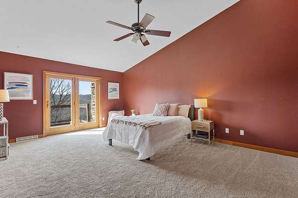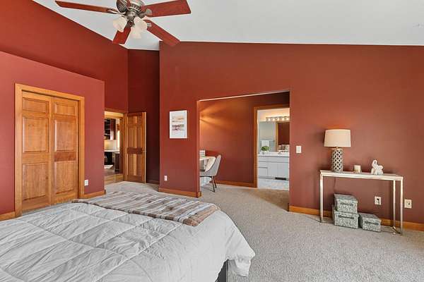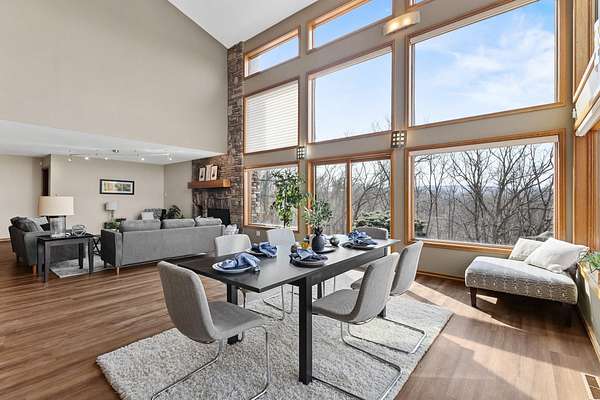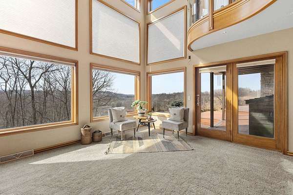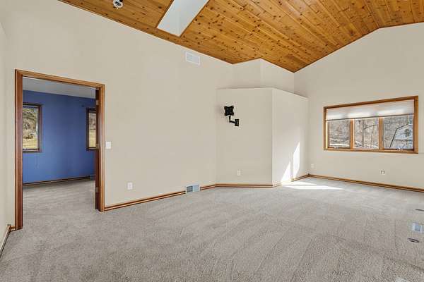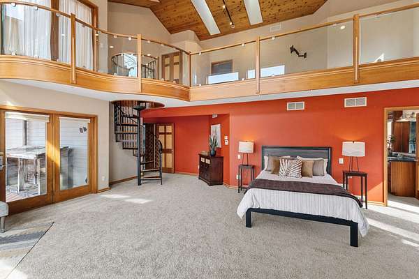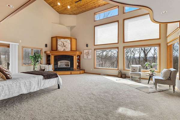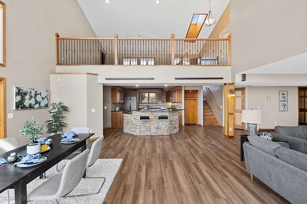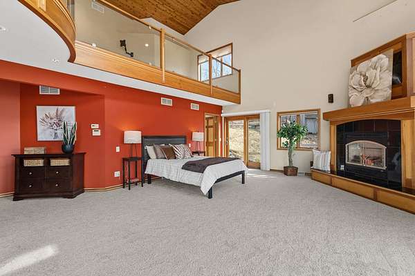 Enjoy breathtaking views of Tyrol Basin from this exceptional home set on more than 18 acres, complete with trails, scenic beauty, beautiful sunset views, and remarkable privacy. Designed for everyday living and effortless entertaining, the spacious living room flows into a chef’s kitchen featuring a large island with breakfast bar, & walk-in pantry. Soaring ceilings and dramatic floor-to-ceiling windows fill the home with natural light while showcasing the incredible views. A lofted family room overlooks the main living spaces and includes a hidden bonus room. The primary suite is a true retreat, with a cozy fireplace & ensuite bath with heated floors, tiled walk-in shower, & a jetted tub. A spiral staircase leads to a unique flex space overlooking the bedroom, ideal for a home office or studio. A second primary suite also features its own private deck, ideal for guests. The walk-out lower level is built for entertaining with a large rec room, custom bar, and a dedicated theater room.