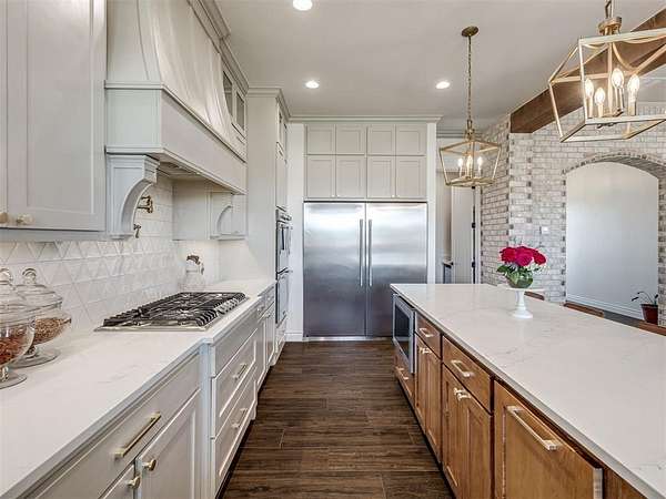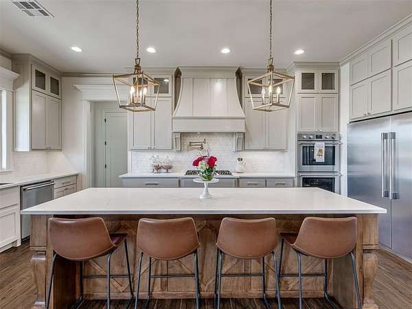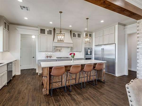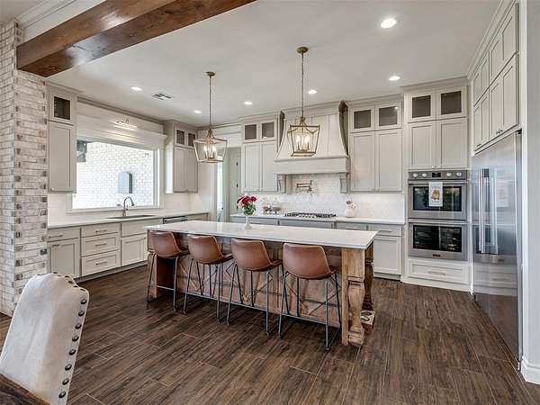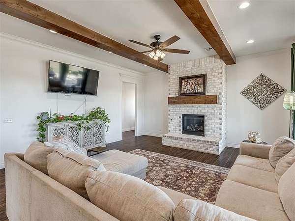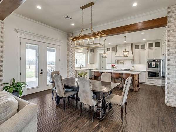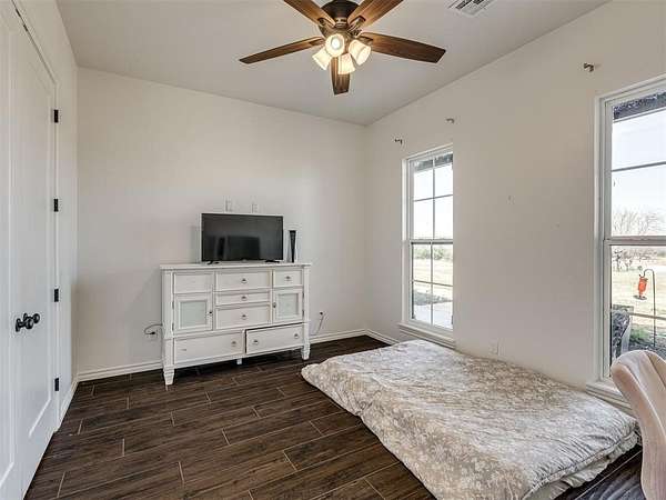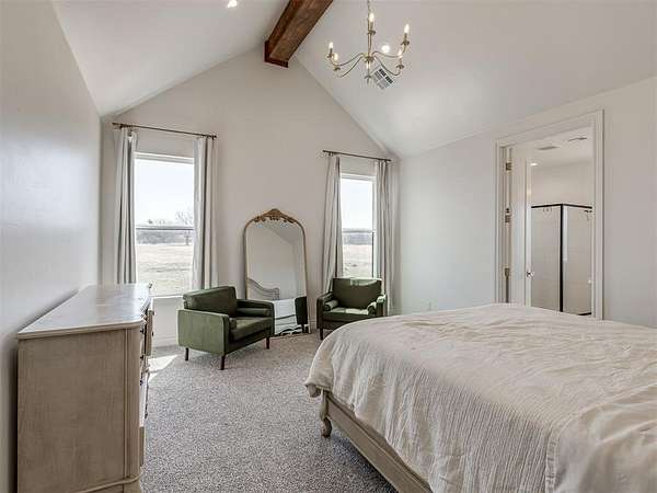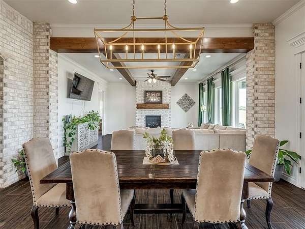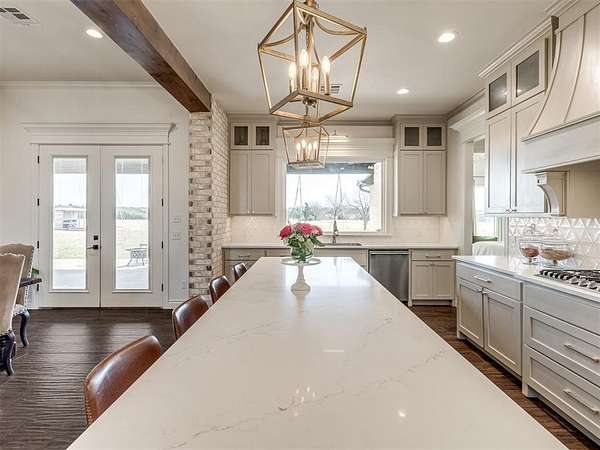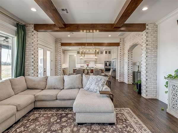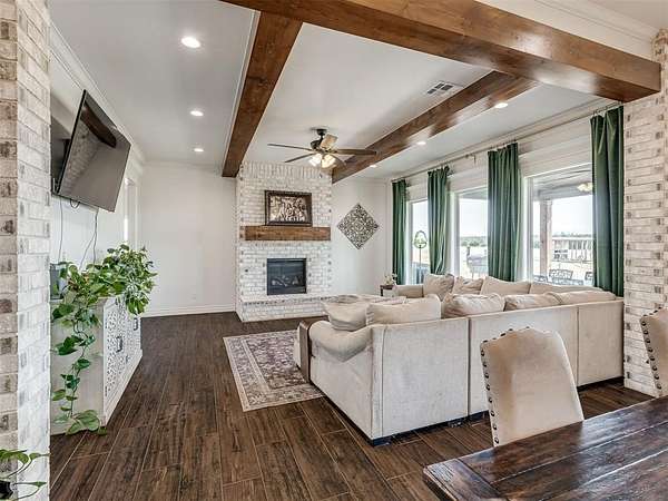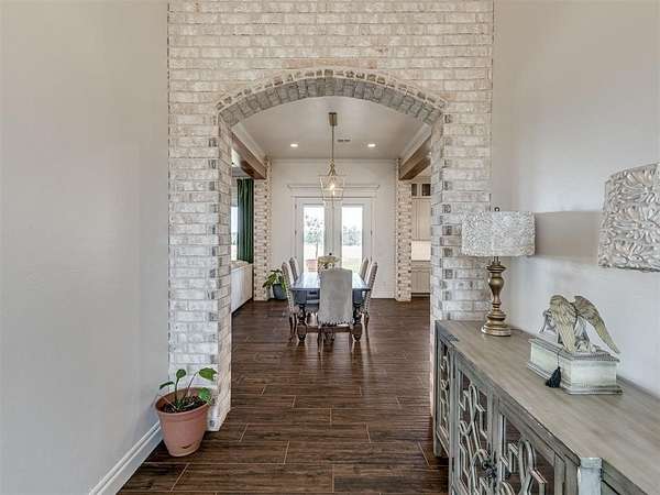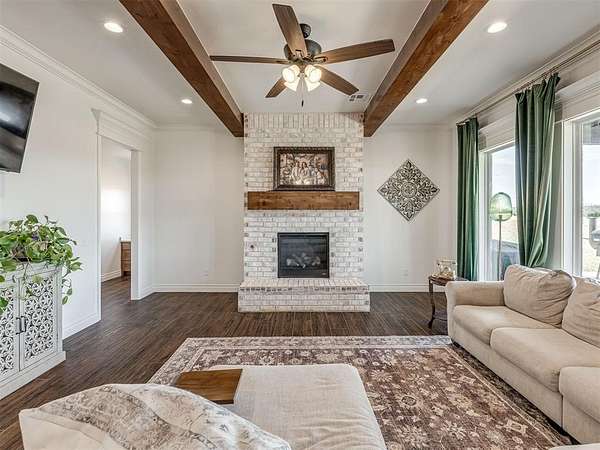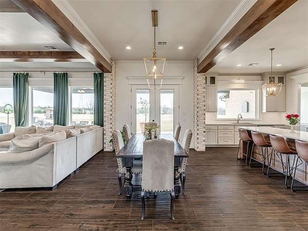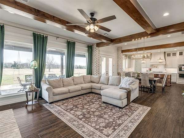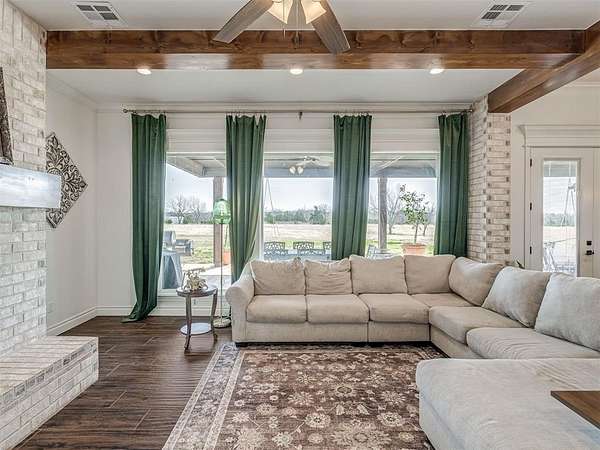 Beautifully designed 4-bedroom, 2-bath home with a private office, offering an inviting open-concept layout filled with natural light. Expansive windows showcase stunning views and create a bright, airy feel throughout the main living spaces. The kitchen serves as the heart of the home with thoughtful design, quality finishes, and plenty of room to gather, while exposed brick accents and beautiful tile flooring add warmth and character. Sellers are motivated and ready to sell! Reach out to schedule your showing. Step outside to the oversized back porch, perfect for relaxing or entertaining while taking in the peaceful surroundings. Additional features include a storm shelter in the garage, well water, and tankless hot water heater, along with several thoughtful upgrades that enhance both comfort and functionality. This home offers the perfect blend of style, space, and serene living.