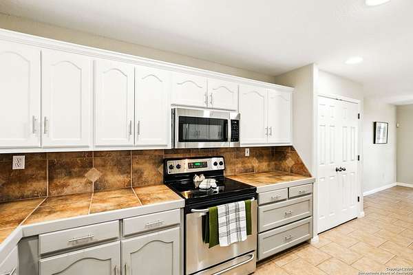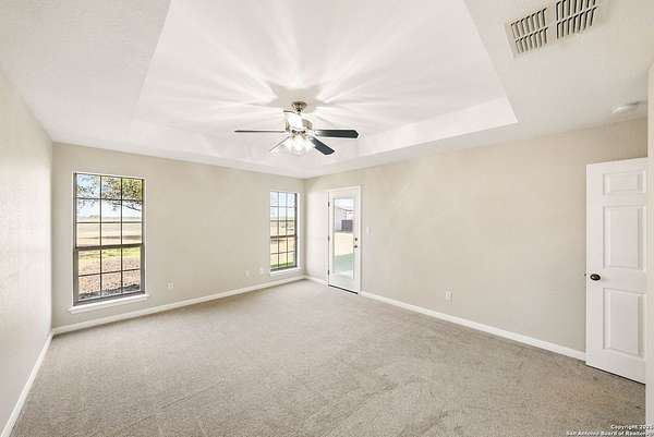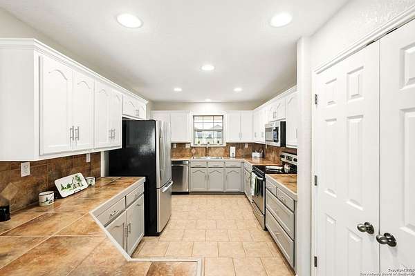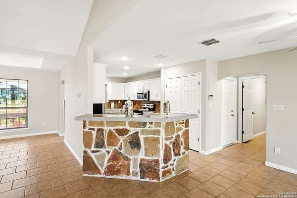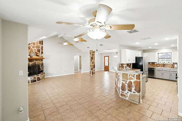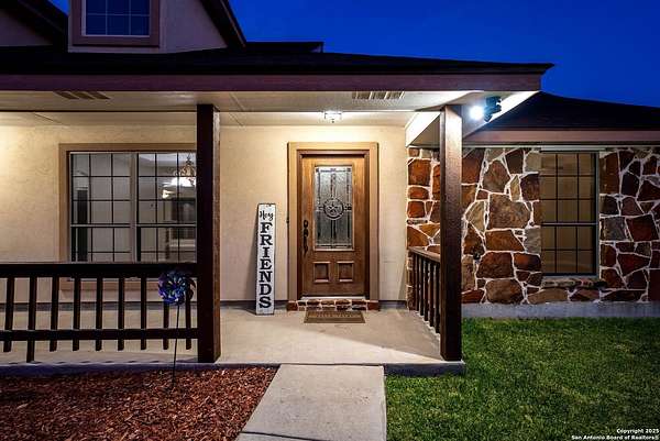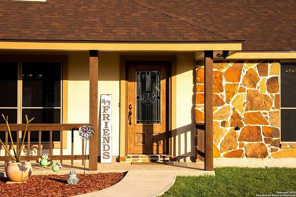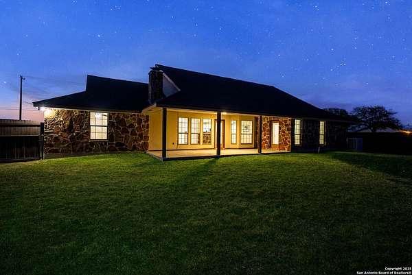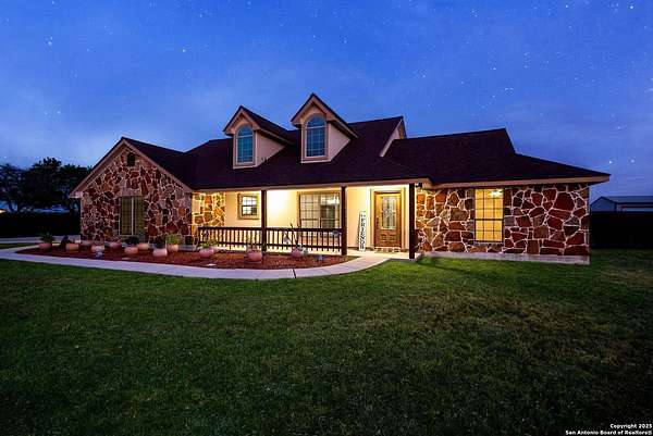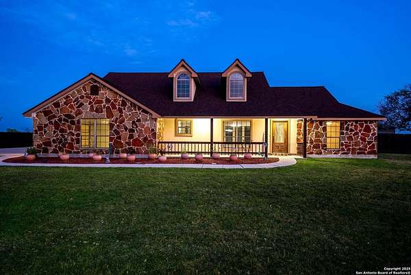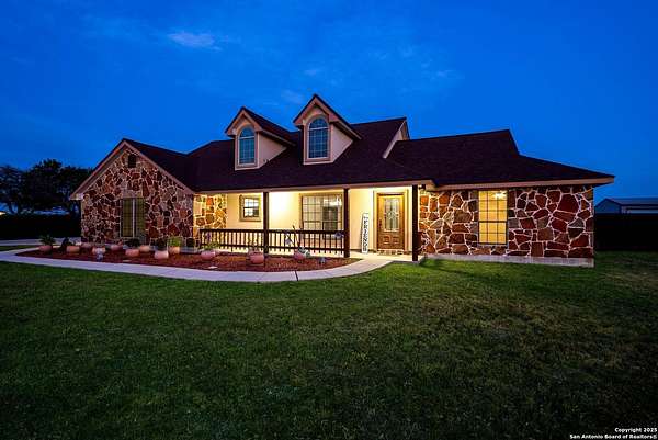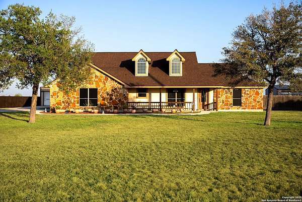 Nestled on 11 acres in the peaceful community of St. Hedwig, this beautifully updated home offers the perfect mix of serene country living with the convenience of being just minutes from San Antonio. With 1,934 square feet of thoughtfully designed space, this home features 3 generously sized bedrooms, 2 full bathrooms, and a formal dining area with charming architectural details. The kitchen is filled with natural light and includes a rock breakfast bar, and a cozy nook ideal for casual dining. The spacious living room impresses with a rock fireplace, cathedral ceiling, and expansive windows that overlook the scenic property. The primary suite provides a private escape with a step ceiling, ensuite bathroom featuring a soaking tub, separate shower, dual sinks, and a walk-in closet. The home has been recently enhanced with a variety of updates, including a new water softener, dishwasher, water heater, microwave, lighting fixtures, carpet in the bedrooms, and more. Outside, you'll find a large covered patio perfect for entertaining, a concrete driveway leading to a 2-car side entry garage, and a well-equipped shop with both a roll-up and standard door. The open land offers plenty of room to roam, graze, or simply enjoy wide open views. Located in Bexar County with easy access to IH-10, this home brings comfort, space, and convenience together in one incredible property.