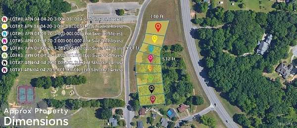 Est $304/moParcel #: 04-04-20-3-001-001.011 County: Montgomery Parcel Size: 1.74 Location: Coosada Ferry Rd, Montgomery AL, 36110 Property Dimensions: 140 ft x 526 ft x 160 ft x 537 ft Elevation: 180 ft Access to Property (Dirt or Paved): Paved Rd Zoning: R-65-s (Residence Zones) Terrain: Flat HOA: Not Part of HOA All lots being sold together