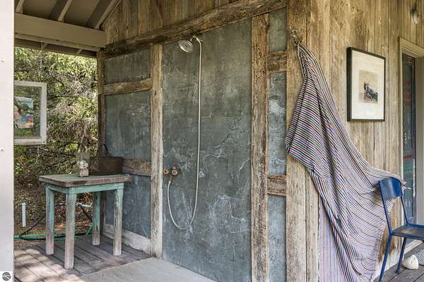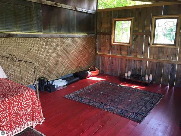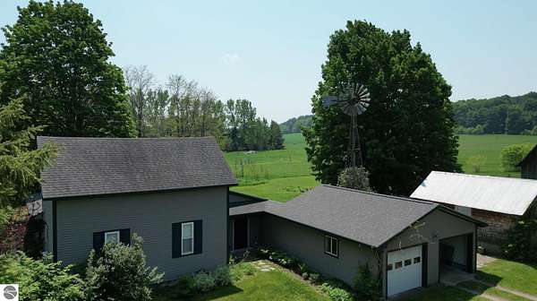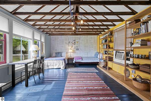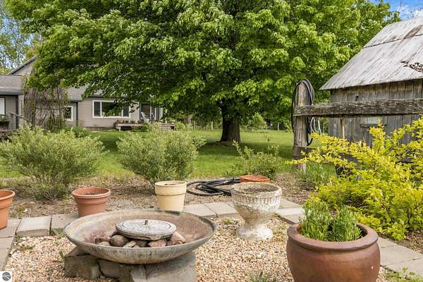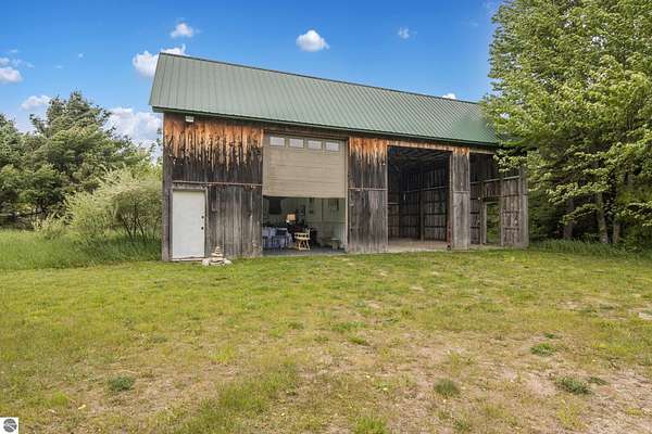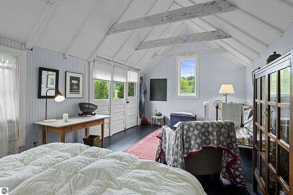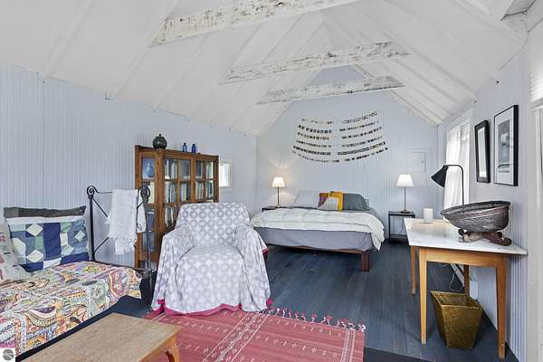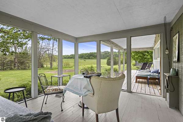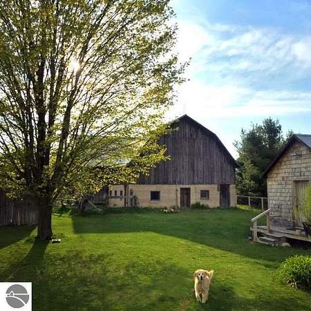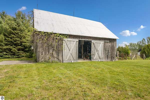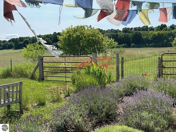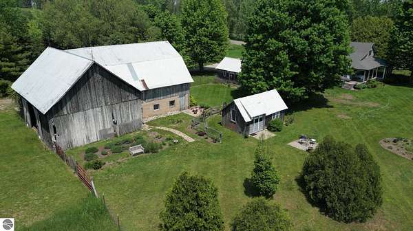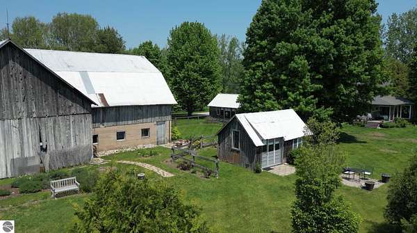 Set amid rolling pastures and orchard breezes, this is a rare opportunity to own something truly special. Established in the 1920s and thoughtfully reimagined, this one-of-a-kind property blends timeless charm with creative possibility—offering not just a home, but a lifestyle and an income-generating retreat. The main farmhouse features maple wood floors, skylights, and a bright, open layout. A main-level bath with a clawfoot soaking tub and oversized walk-in shower adds a touch of everyday luxury, while the spacious loft serves beautifully as a primary suite, studio, or inspiring workspace. A screened-in porch, fenced yard, and expansive deck create inviting spaces to relax, gather, and take in the surrounding countryside. Beyond the farmhouse, the property unfolds into a curated collection of repurposed outbuildings—each rich with character and crafted from salvaged materials. Two studio type spaces full of charm, one a former chicken coop and the other a converted structure complete with heat and A/C, were recently used as AIRBNB spaces. Guests enjoyed a shared bathhouse with indoor and outdoor showers (and even an outdoor soaking tub), along with a welcoming lounge and dining space. Further back, a grainery-style building adds seasonal rental potential, while a covered open-air yoga and meditation space invites peaceful moments overlooking the open pasture. Anchoring the property is the original barn and windmill, where you’ll find horse stalls, storage, workshop space, and a working space complete with running water, once a pottery studio. Meander the grounds to discover gardens, trails, a firepit, and a former glamping platform—each adding to the property's sense of wonder and possibility. Located just 15 minutes from Leland, Suttons Bay, Cedar, and Lake Leelanau, with easy access to beaches, wineries, golf, and dining—this is a rare and artful slice of Leelanau County, ready for its next steward to bring their own vision.