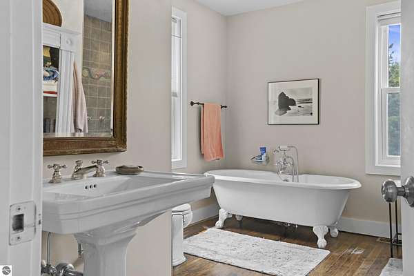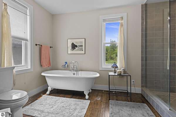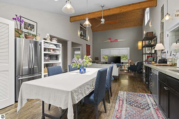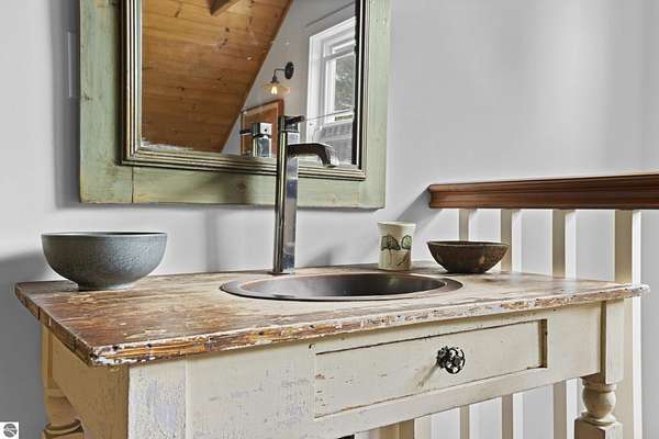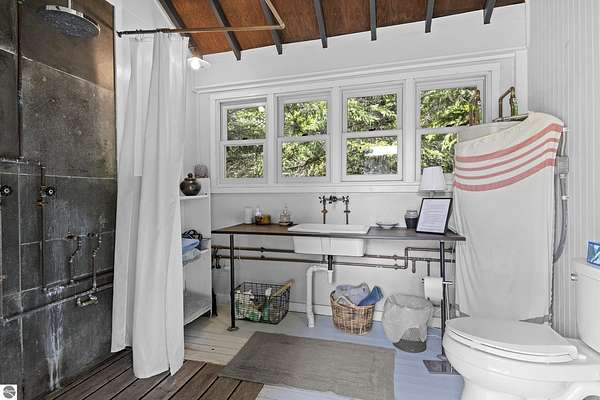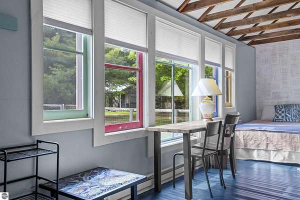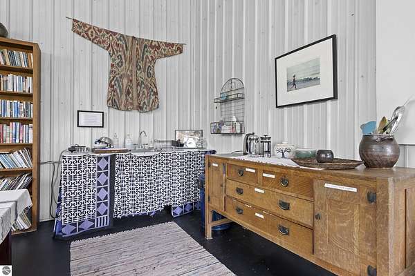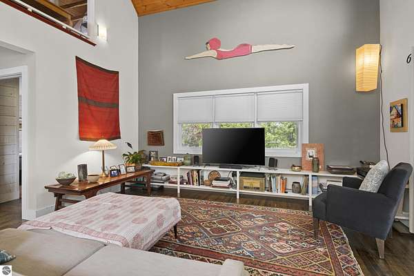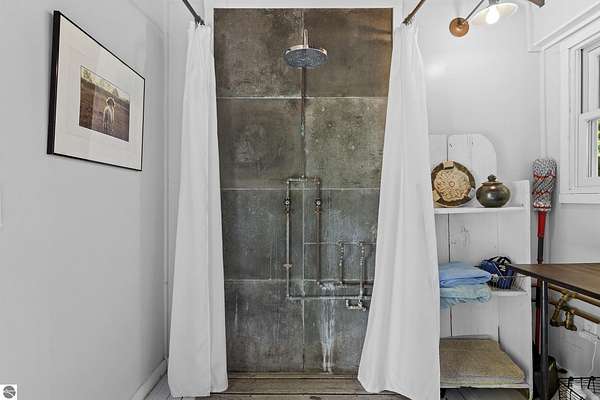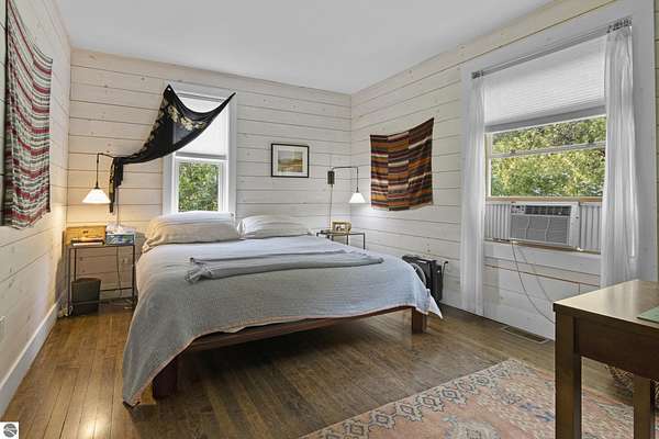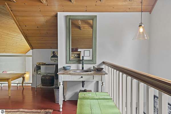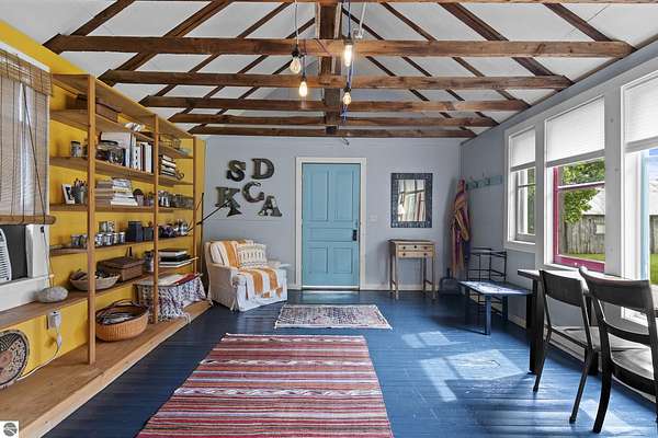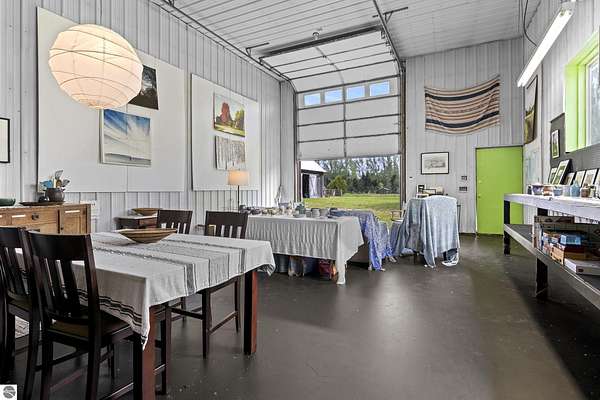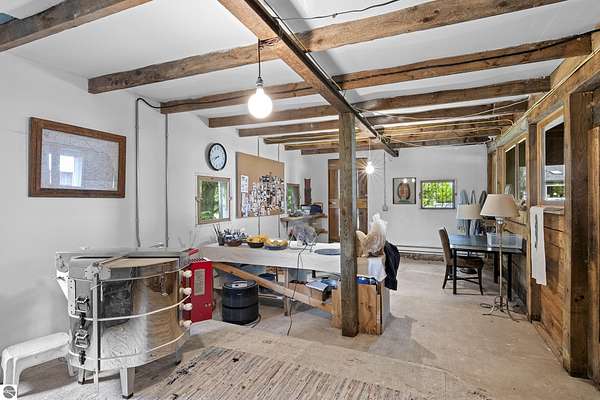 Set amid rolling pastures and orchard breezes, this is a rare opportunity to own something truly special. Established in the 1920s and thoughtfully reimagined, this one-of-a-kind property blends timeless charm with creative possibility—offering not just a home, but a lifestyle and an income-generating retreat. The main farmhouse features maple wood floors, skylights, and a bright, open layout. A main-level bath with a clawfoot soaking tub and oversized walk-in shower adds a touch of everyday luxury, while the spacious loft serves beautifully as a primary suite, studio, or inspiring workspace. A screened-in porch, fenced yard, and expansive deck create inviting spaces to relax, gather, and take in the surrounding countryside. Beyond the farmhouse, the property unfolds into a curated collection of repurposed outbuildings—each rich with character and crafted from salvaged materials. Two studio type spaces full of charm, one a former chicken coop and the other a converted structure complete with heat and A/C, were recently used as AIRBNB spaces. Guests enjoyed a shared bathhouse with indoor and outdoor showers (and even an outdoor soaking tub), along with a welcoming lounge and dining space. Further back, a grainery-style building adds seasonal rental potential, while a covered open-air yoga and meditation space invites peaceful moments overlooking the open pasture. Anchoring the property is the original barn and windmill, where you’ll find horse stalls, storage, workshop space, and a working space complete with running water, once a pottery studio. Meander the grounds to discover gardens, trails, a firepit, and a former glamping platform—each adding to the property's sense of wonder and possibility. Located just 15 minutes from Leland, Suttons Bay, Cedar, and Lake Leelanau, with easy access to beaches, wineries, golf, and dining—this is a rare and artful slice of Leelanau County, ready for its next steward to bring their own vision.