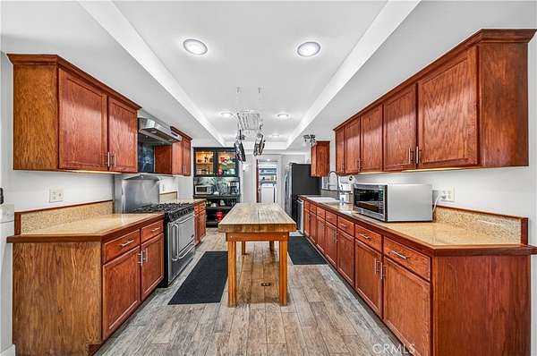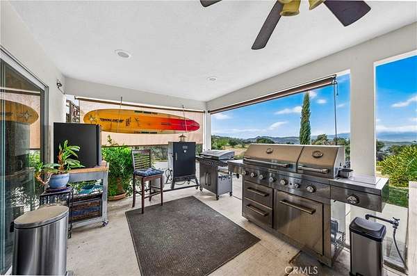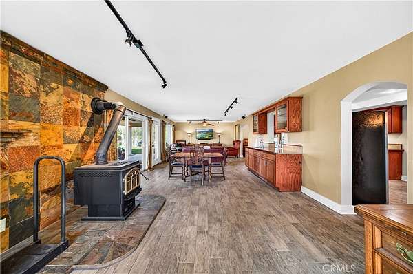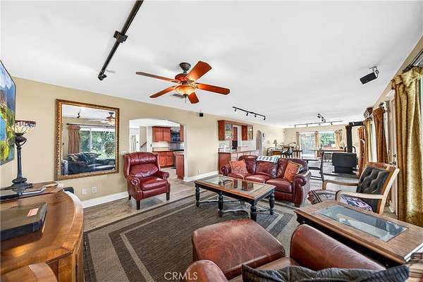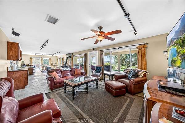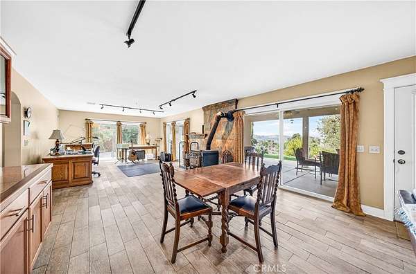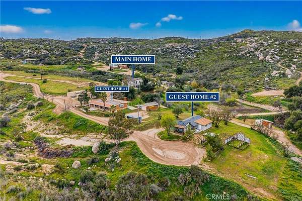 An extraordinary opportunity awaits at 33620 Oak Dr, Hemet, CA 92544 an exceptional 47.85-acre retreat privately situated at the end of a dedicated easement and embraced by a stunning 360-acre nature preserve and national forest. This remarkable property features three beautifully designed residences, creating the ultimate private sanctuary for multi-generational living, rental income, or a peaceful escape. The main residence spans approximately 3,400 square feet and offers four spacious bedrooms, three full bathrooms, two dining areas, and a thoughtfully designed kitchen that opens seamlessly into a breathtaking great room with a built-in bar and panoramic views through three expansive sliding glass doors perfect for unforgettable gatherings. Solid wood plank flooring enhances the inviting family room, complete with a cozy wood-burning stove, while the downstairs features tile flooring and the home boasts a total of two wood-burning stoves and one fireplace. Upstairs, four bedrooms one ideal for a home office provide comfort and flexibility. The second residence, an approximately 1,450-square-foot manufactured home, includes two bedrooms, two bathrooms, a generous living room, a family room with a wood-burning stove, a spacious kitchen with an island, and an indoor laundry area. The third residence, affectionately known as “The Cottage,” offers approximately 850 square feet of charming living space with one bedroom, one bathroom, a brand-new kitchen, and a wood-burning stove that enhances its cozy cabin ambiance. The land itself is a nature lover’s dream, featuring seasonal creeks and ponds, abundant wildlife, pasture areas, and multiple hiking trails, all at an elevation of approximately 3,100 feet with sweeping views of rolling hills and mountain ranges stretching from Big Bear to Idyllwild. With ample space for livestock, recreation, and endless possibilities, plus the benefit of private well systems, this one-of-a-kind property offers unmatched privacy, versatility, and breathtaking natural beauty.