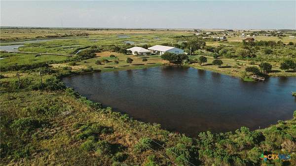 Waterfront coastal retreat with EVERYTHING you've been looking for! 36.7 acres of fenced native pastures, pond, bayfront and wetlands teeming with native wildlife. Your very own nature & fishing retreat. The Austin Stone house is a true gem with wind-rated metal roof, impact resistant vinyl windows and slab on bell piers. Inside the home boasts a cavernous living area complete with soaring beamed ceiling and kitchen loaded with storage and elegant finishes. Airy and inviting, the house has durable engineered wood and tile flooring and tranquil natural tones throughout. The Barn gives endless options for storage with 3187 sq ft of insulated interior and 1912 sq ft of outdoor covered area. Take a stroll down the 688' x 6' pier, reinforced with poly decking, to your very own boat barn and slip. This unique property offers an unparalleled coastal living experience!