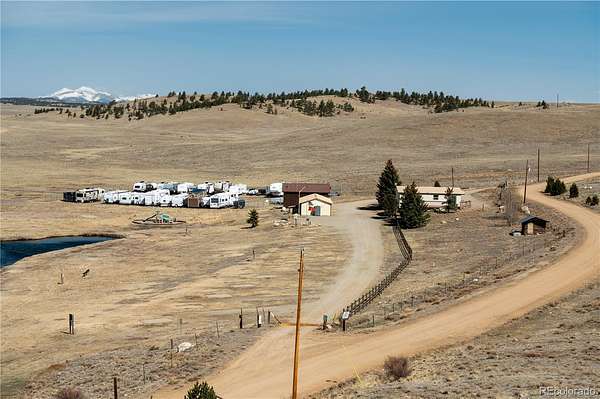 This open plains lot in Wildwood Recreational Village offers nearby access to BLM public land and is just one mile to Pike National Forest access roads. This location is ideal for hiking, exploring, hunting, and wildlife watching. The 12-acre property features a small storage shed and panoramic views.
