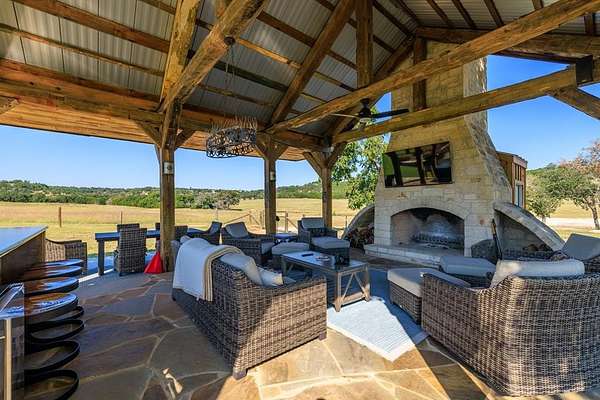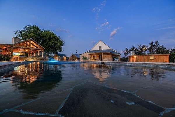 The Historic Ellebracht-Moritz Homestead | A Hill Country Legacy Tucked away just three miles from Fredericksburg along RR 965, Tract 4 encompasses the heart of the Ellebracht-Moritz Homestead, a Recorded Texas Historic Landmark (c.1850s) that reflects the timeless charm of early Hill Country architecture. This 28.94+/- acre estate blends historic authenticity with modern luxury, surrounded by rolling pastures and mature oak trees. The tract includes a beautifully restored 1BR/1BA stone home with original 1850s details plus a 2BR/2BA main residence, and two additional 1BR/1BA guest cottages--ideal for extended family, guests, or income-producing rentals. A 19th-century root cellar has been transformed into a climate-controlled wine room, while the resort-style pool serves as the centerpiece of outdoor living. The pool area features a stunning antique-timber cabana with a stone fireplace, outdoor kitchen, wine fridge, ice maker, warming drawer, stainless appliances, and ample storage--perfect for entertaining under the Hill Country sky. Practical improvements include a 3-car garage with equipment bays, a 2-stall horse barn, and a chicken coop. A concrete-lined lake adds beauty and functionality, and a private well supplies the improvements on this tract. With direct frontage on RR 965 and minutes to town, this property offers exceptional convenience without sacrificing privacy. Tract 4 may be purchased individually as a luxury ranch compound or combined with additional adjoining tracts to create a larger legacy estate, up to 100.59+/- acres.