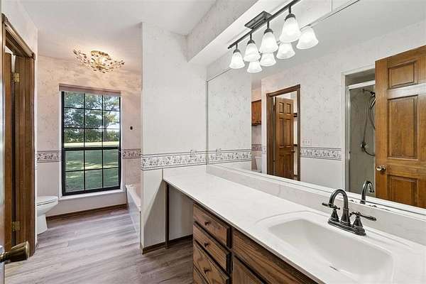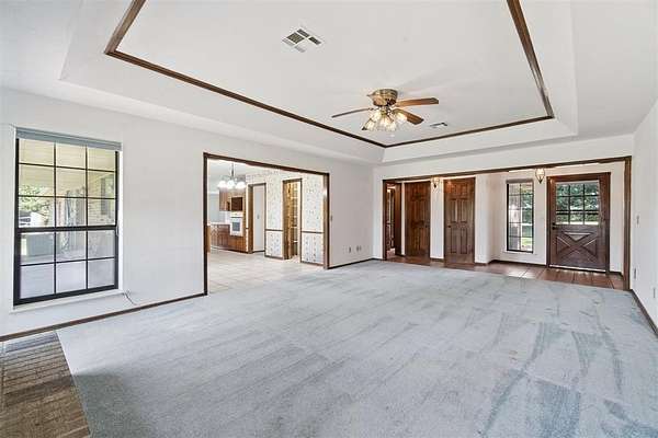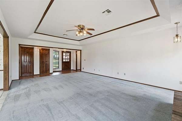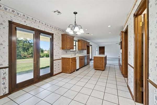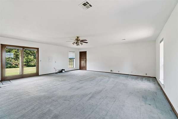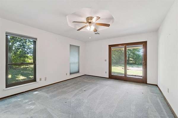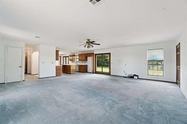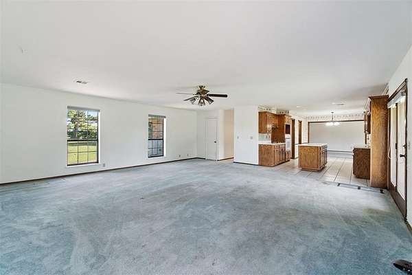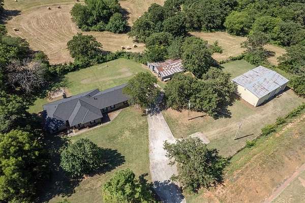 Discover country living at its best on 20 stunning acres! This sprawling ranch home invites you to relax and enjoy a peaceful and private lifestyle. This home offers an expansive open floor plan that creates a seamless flow between two spacious living areas, anchored by a kitchen perfect for entertaining. Stepping inside, you're immediately welcomed by the expansive living room, anchored by a cozy fireplace and flowing seamlessly into the kitchen and eating area. The open-concept kitchen, with a versatile island and large pantry, is designed to be the vibrant heart of the home, effortlessly connecting to the dining and living areas. The extra-large second living space offers numerous possibilities. It could function as a spacious family room, a game room, a home theater, a large home office, or even a combination of these. Bedrooms are thoughtfully laid out, with the primary suite boasting a private hallway off the living room, ensuring a peaceful retreat. The primary suite includes a large bathroom with a separate shower and tub plus a large walk-in closet. Two additional spacious bedrooms and a dedicated hall bath provide comfortable accommodations for everyone. Two sets of French doors and large windows throughout the home offer breathtaking views of the surrounding land and fills the space with natural light. Outside a backyard slab, already wired for electric, presents the ideal canvas for outdoor living, whether it's a cozy patio, a hot tub oasis, or an outdoor kitchen. The 40' x 60' shop is perfect for your projects and equipment storage. Adding to the appeal, a tranquil pond enhances the natural beauty of the property and offers a peaceful setting. This exceptional property offers the perfect balance of serene rural living and convenient access to town amenities, with options in every direction for shopping, dining, and more.