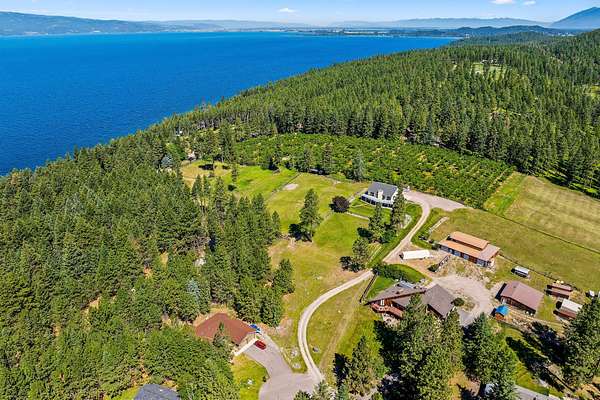 Nestled on 8.38 private acres just minutes from downtown Bigfork & the sparkling waters of Flathead Lake, this versatile property offers extraordinary potential & breathtaking surroundings. The 3BD/5BA home boasts 3,026 SF of living space, an attached heated 26'x28' garage, and is complemented by panoramic mountain vistas & views of Flathead Lake. Multiple buildings span the property, including a charming cedar barn w/ half bath, a lean-to, a 2nd detached four-stall garage, cedar storage sheds, & a tractor port, providing ample space for hobbies, storage, or future ventures. With 3 separately surveyed parcels & multiple building sites, the possibilities are endless-whether you envision a private estate, multi-family retreat, or investment opportunity. Expansive lawns invite outdoor gatherings & recreation, while the serene setting ensures both privacy & convenience. Experience Montana living w/ room to create your own legacy. See Feature Sheet in Docs. HOA for .66 parcel only