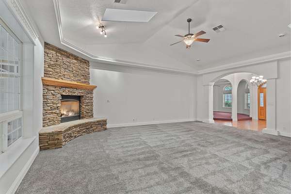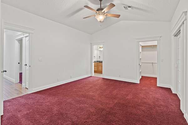 - Ceiling Fan(s), Granite Counters, Linen Closet, Open Floorplan, Pantry, Primary Downstairs, Smart Thermostat, Soaking Tub, Stone Counters, Vaulted Ceiling(s), Walk-In Closet(s), Wired For Sound