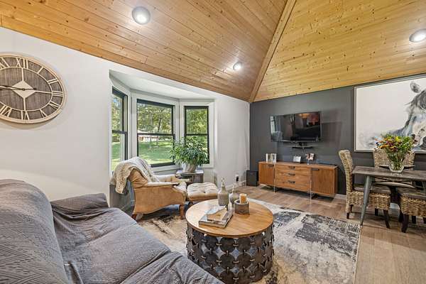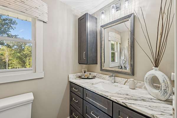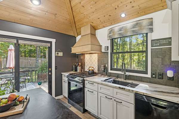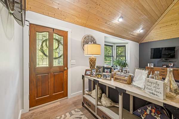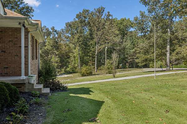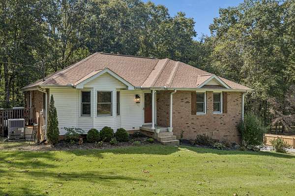 Charming brick home with full basement, located on a quiet cul de sac in an established, smaller neighborhood. Conveniently located just off of Hwy 100 in Lyles, TN on a lush, wooded 4.2 acred lot. Just minutes from Dickson, Fairview, Centerville and 840. This home has been completely renovated with high-end beautiful finishes. Fabulous new kitchen with a large island, built-in microwave drawer, pantry with roll-out drawers! All natural stone countertops throughout the home, raidiant floor heating in principal bathroom. 16 ft vaulted tongue and groove ceiling with wood beam in kitchen/family room - open concept. All new tile in bathrooms. Basement has a coal/woodburning stove and chimney that remains. Survey done in 2024 so lot is flagged and marked. Shed is negotiable! The 4 large lava rocks in the front landscaping and the stone dobermans at the garage DO NOT stay and are not negotiable. This home is move in ready!