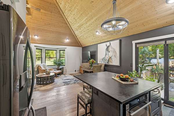 - Air Filter, Ceiling Fan(s), High Ceilings, Kitchen Island, Open Floorplan, Pantry, Redecorated