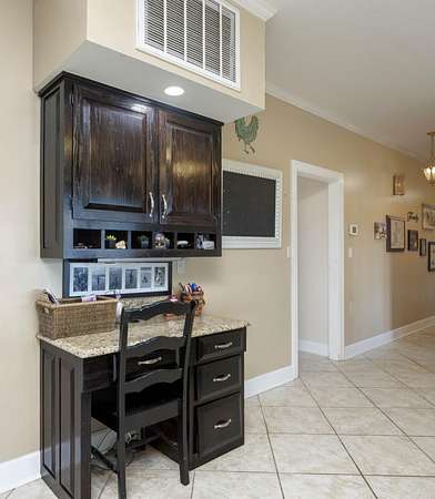 - Bathroom Mirror(s), Built-In Features, Ceiling Fan(s), Central Vacuum, Crown Molding, Granite Counters