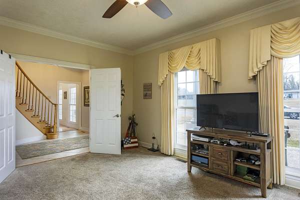 Exquisite Southern Colonial masterpiece nestled on 2.95 acres in Dayton, TN. This stunning 4-bedroom, 3-bathroom home boasts breathtaking views and a wealth of elegant features. As you enter, you'll be greeted by a grand foyer showcasing a winding staircase that leads to the upper level. To the right, the formal dining room exudes sophistication, while the left side features a cozy formal living room. The heart of this home is the beautifully appointed kitchen, equipped with stainless steel appliances, including a gas cooktop and oven, complemented by granite countertops. The adjacent breakfast area is bright and airy, with large sliding doors that invite you to the expansive outdoor deck, ideal for enjoying your morning coffee or hosting summer barbecues. Down the hall, discover a bedroom that offers versatility for guests or a home office. At the end of the hall, relax in the family den, complete with a cozy gas fireplace-a perfect spot for gatherings. Upstairs, the primary bedroom awaits, leading to a spa-like bathroom featuring double vanities and a soaking tub, providing a tranquil escape. Two additional guest bedrooms and a guest bath complete the upper floor, ensuring ample space for family and visitors. The home also features a convenient laundry room off the kitchen and a 2-car garage for all your storage needs. Step outside to your private oasis, featuring a 27-foot above-ground pool with stunning views of the Tennessee mountains, a relaxing hot tub, and a large back patio for all outdoor entertaining. An outbuilding provides extra storage options, while the circular driveway adds a charming touch to the property. Additionally, just down the road, you'll find a community boat dock and park, available for use with a nominal $150 annual fee, perfect for enjoying leisurely days on the water. Don't miss the opportunity to make this elegant Southern Colonial your home. Schedule a showing today!