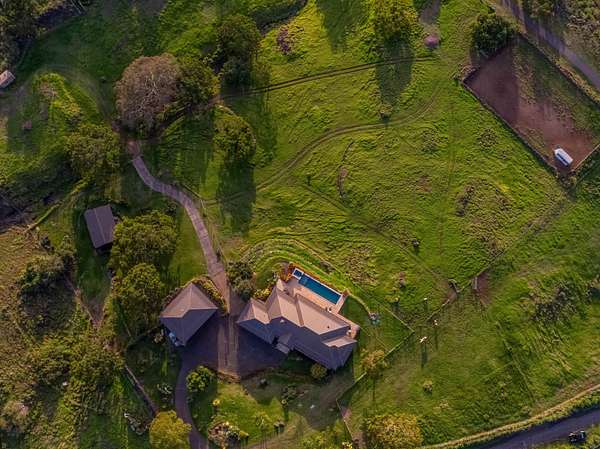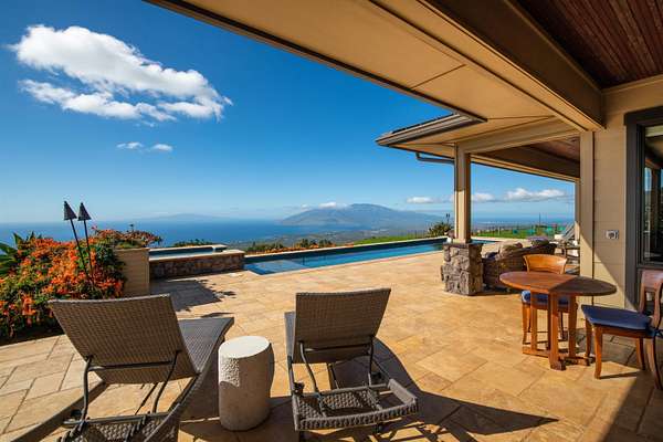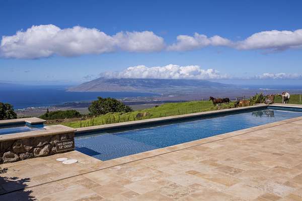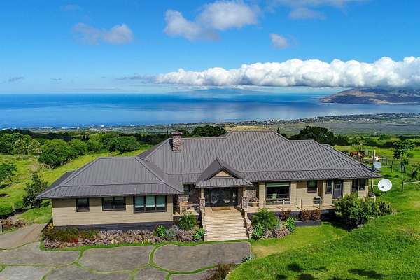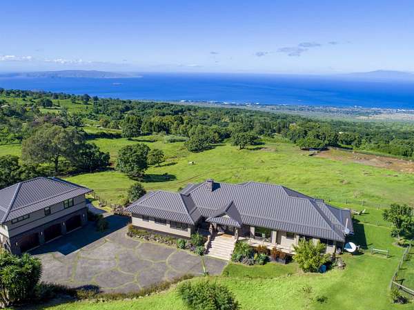 A truly rare offering in coveted Keokea. This exceptional Upcountry estate is perfectly positioned between Kula and Ulupalakua, presenting an unparalleled living experience in one of Maui's most sought-after areas. Surrounded by sweeping natural beauty and rich island heritage, Keokea embodies tranquility and timeless charm. Set on 6.5 acres of meticulously manicured grounds, the property offers remarkable privacy while remaining conveniently close to shops, dining, and endless outdoor pursuits. Unobstructed ocean and Haleakala views serve as a breathtaking backdrop from every vantage point. Offered for sale by the original owner--renowned builder Keith Troxel--this custom, rustic-contemporary ranch-style residence is ideally situated at 2,300 feet in elevation, just below the Oprah Winfrey Estate and Sun Yat Sen Park. Enter through solid wrought iron doors that open to the elegant main residence with two primary suites thoughtfully positioned at opposite ends of the home for enhanced privacy. Interiors are appointed with acacia wood and travertine flooring throughout, while the expansive chef's kitchen showcases a custom Monkeypod wood island, premium appliances, and granite countertops--perfect for both entertaining and everyday living. Seamlessly blending indoor and outdoor living, the home opens to an expansive lanai overlooking a resort-style pool and spa, set amidst park-like grounds and framed by panoramic ocean vistas. Enhancing the estate is a beautifully designed carriage-style cottage with a three-car garage below, offering flexibility for guests or extended living. The property is fully fenced and gated, complete with a barn and arena, and features a large 3/4 -inch water meter, allowing for potential future expansion. This is a once-in-a-lifetime opportunity to own a slice of heaven that is so unique, you will not find it anywhere else on Maui. Lister is owner.