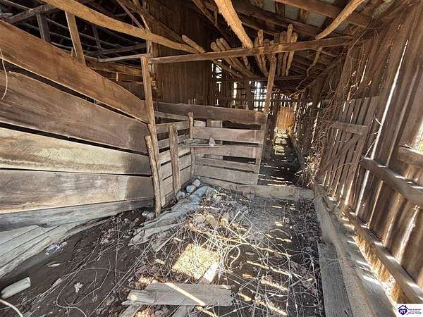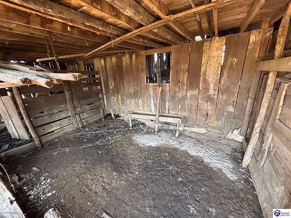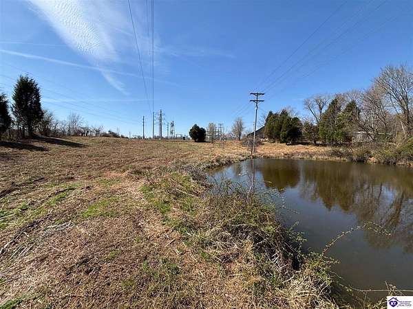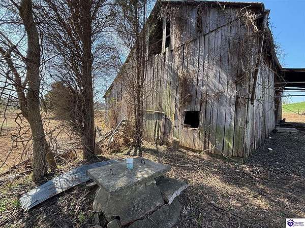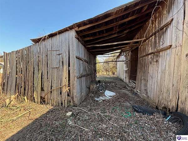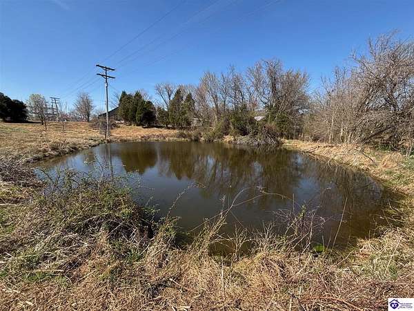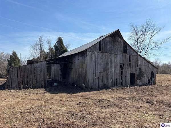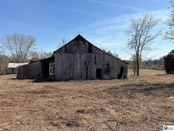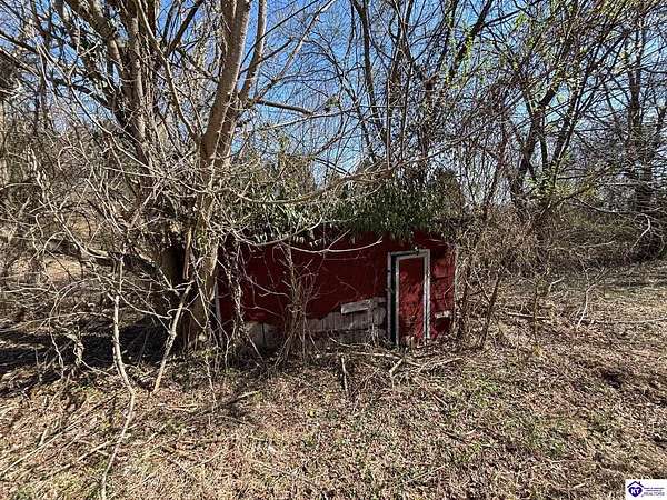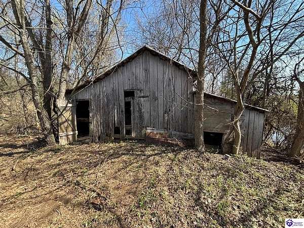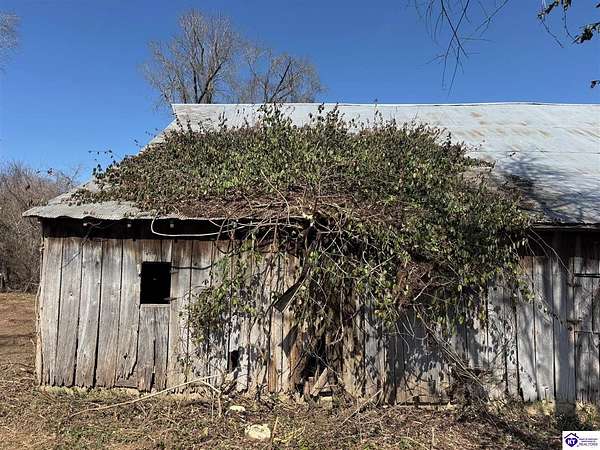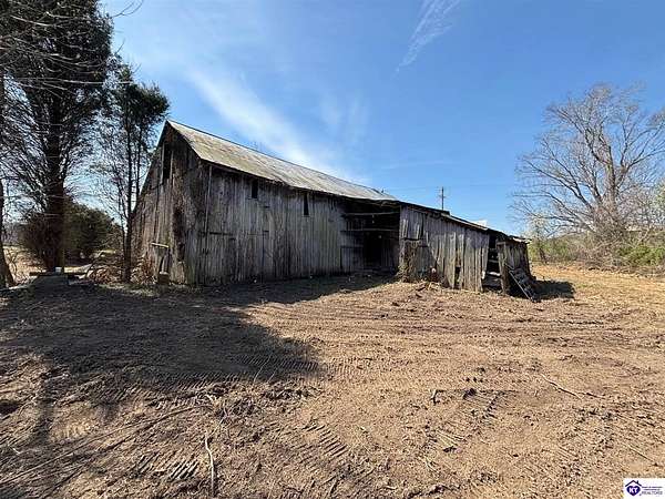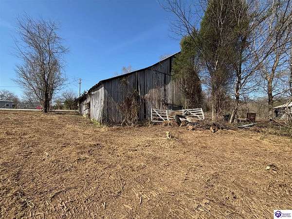 Going on the auction block, selling by online bidding only, with bidding ending on April 8, 2026 at 4:00 PM CDT, is a barn, pond, outbuildings and 2.512 acres fronting LM Basham Lane. Access to the real real estate is from LM Basham Lane. Public water is available on the real estate from the City of Cloverport.