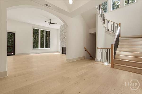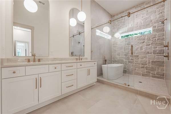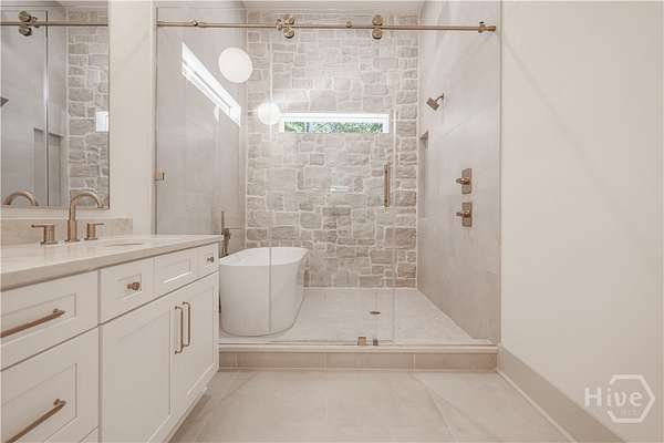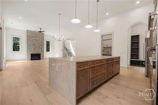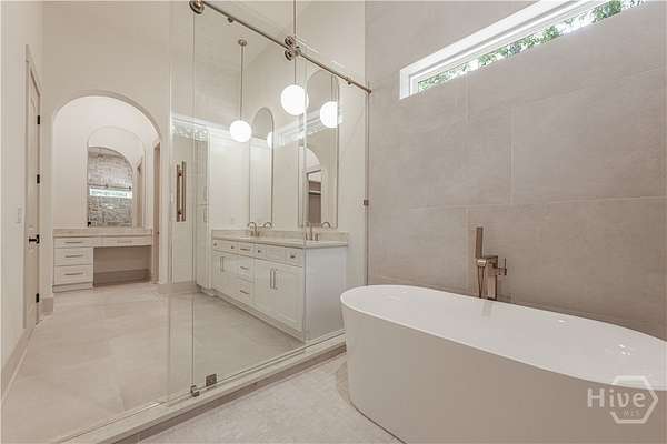 - Bathtub, Breakfast Bar, Built-In Features, Butler's Pantry, Ceiling Fan(s), Double Vanity, Entrance Foyer, High Ceilings, Kitchen Island, Main Level Primary, Pantry, Primary Suite, Pull Down Attic Stairs, Recessed Lighting, Tub Shower, Vanity, Vaulted Ceiling(s), Wet Bar