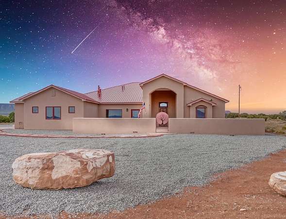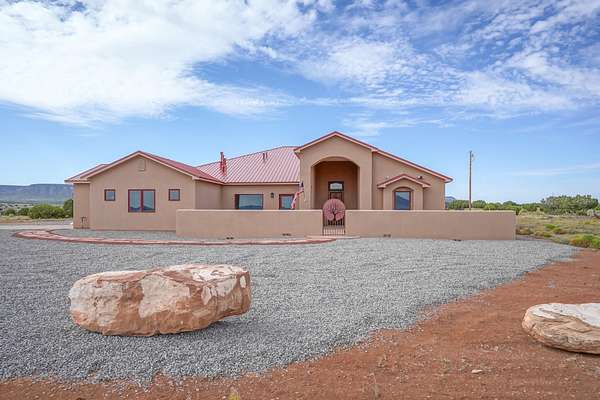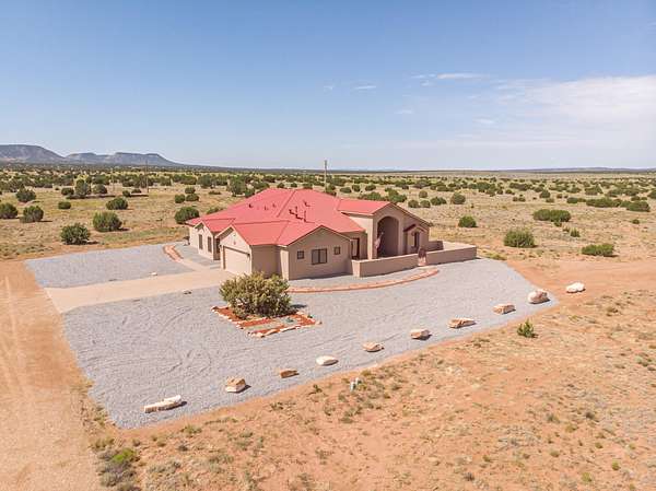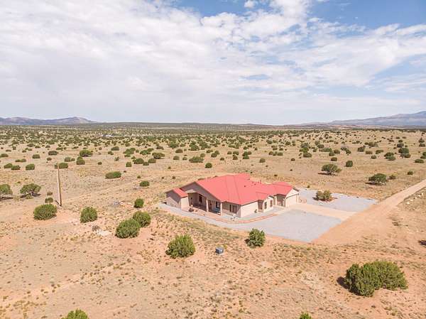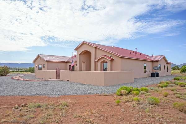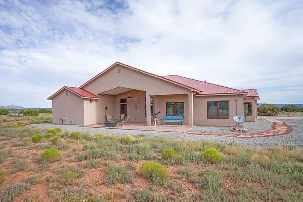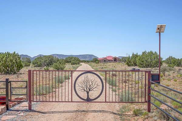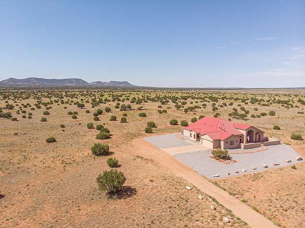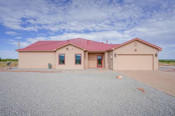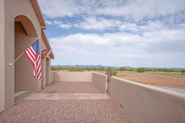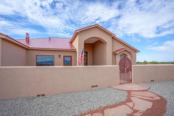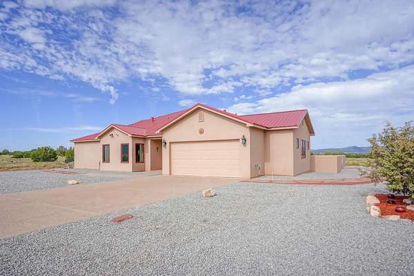 Welcome home to your ranch retreat. This exquisite property is your dream come true. 150 Acres and 3500 Sq Ft home currently set up as 3 bedrooms, 2.5 bath, 2 professional offices and a gym it has the possibility of 5 bedrooms. Outstanding views in any direction outside of the home but inside you will find the comfort of a custom fireplace in the heart of the living room which is open to the custom kitchen and dining room. Kitchen boast Marble counters and Stainless appliances Primary suite features 2 walk in closets, his and her vanities walk in shower and jetted garden tub. Two professional offices for the power couple one has attached half bath and the other has attached gym. North facing courtyard has great views of the Manzano Mountains and south patio views of the Chupadero gap.