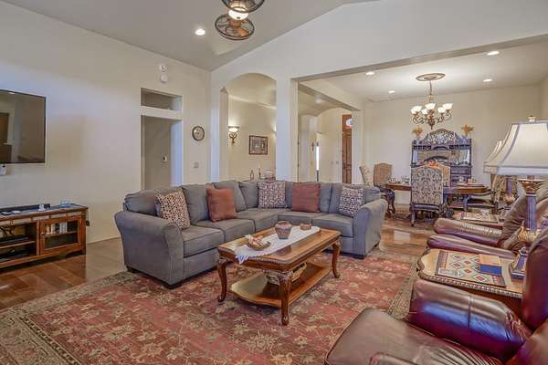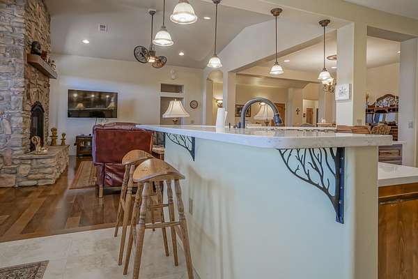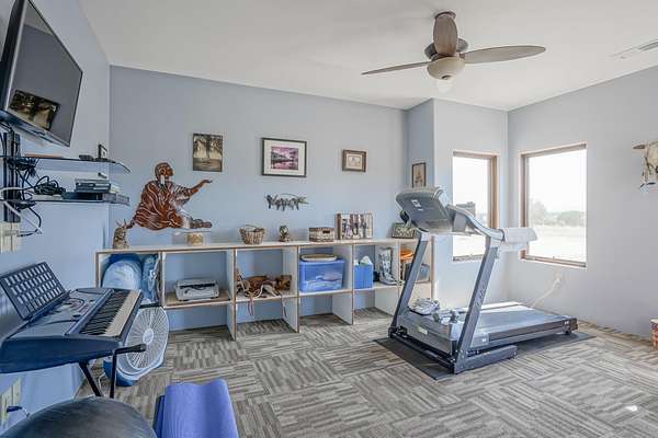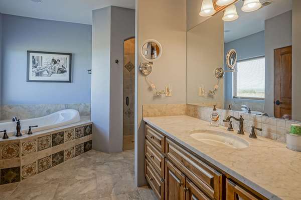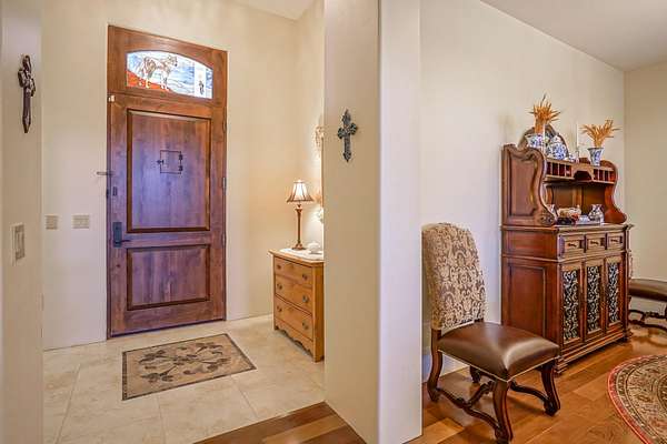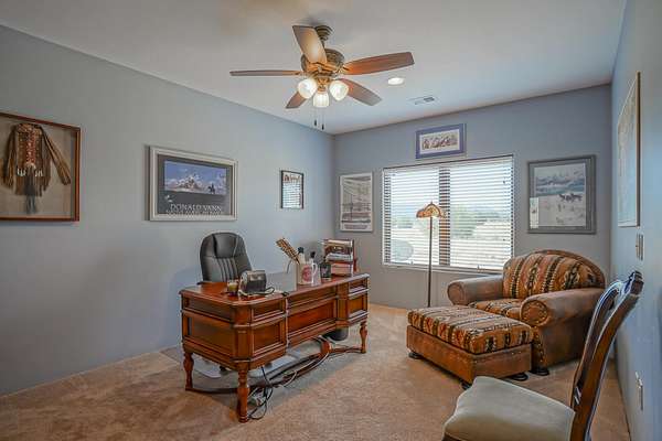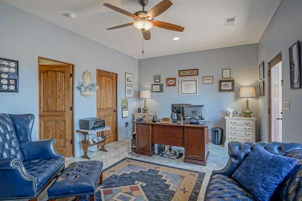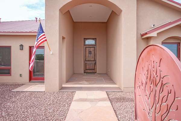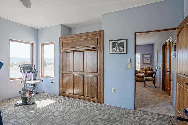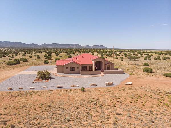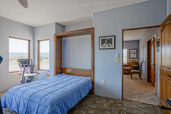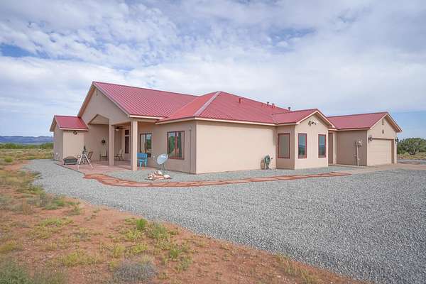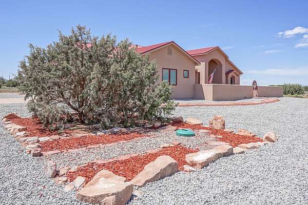 Welcome home to your ranch retreat. This exquisite property is your dream come true. 150 Acres and 3500 Sq Ft home currently set up as 3 bedrooms, 2.5 bath, 2 professional offices and a gym it has the possibility of 5 bedrooms. Outstanding views in any direction outside of the home but inside you will find the comfort of a custom fireplace in the heart of the living room which is open to the custom kitchen and dining room. Kitchen boast Marble counters and Stainless appliances Primary suite features 2 walk in closets, his and her vanities walk in shower and jetted garden tub. Two professional offices for the power couple one has attached half bath and the other has attached gym. North facing courtyard has great views of the Manzano Mountains and south patio views of the Chupadero gap.