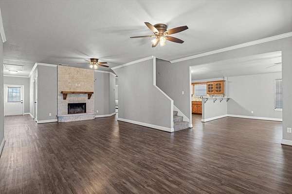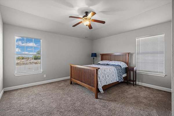Escape to the country with this beautiful 4 bed, 2 bath brick home nestled on 5 acres of open land. Built in 2006 and updated with modern finishes, this 2,648 sq ft home offers the perfect blend of comfort and rural charm. Step inside to find an inviting open-concept layout with a spacious living area, stone fireplace, and bright natural light throughout. The kitchen features granite countertops, stainless steel appliances, and plenty of cabinet space. The primary suite includes a luxurious bath with dual glass vessel sinks, tiled shower, and soaking tub.
