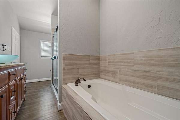 - Decorative Lighting, Double Vanity, Granite Counters, Vaulted Ceiling(s)