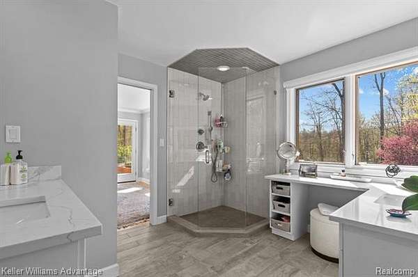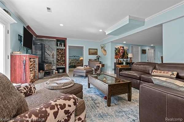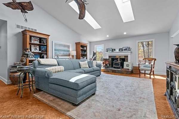 Welcome to your private retreat on 5 breathtaking acres-where tranquility, natural beauty, and thoughtful design come together to create a truly one-of-a-kind property. This exceptional walkout ranch is set on a picturesque parcel featuring a serene pond, mature trees, and lush, professionally maintained landscaping, offering stunning views in every direction. The home offers 4 bedrooms, including two spacious en-suites on the main level, ideal for comfort and convenience, along with two additional bedrooms in the walkout lower level-perfect for guests or multi-generational living. The beautifully updated kitchen showcases granite countertops, stainless steel appliances, and flows seamlessly into the expansive great room, where skylights fill the space with natural light and a cozy fireplace creates the perfect setting to relax and unwind. Step outside to the large deck and take in peaceful views of your private pond, or enjoy the added luxury of an outdoor shower just off the primary suite. The walkout lower level is designed for both relaxation and entertaining, featuring a cozy wood-burning fireplace, full bath, abundant storage, and flexible living space, along with plumbing already in place for a future lower-level laundry area. A standout feature of this property is the impressive barn (approximately 24 x 40), complete with electricity and endless potential. Whether you envision a workshop, studio, home office, or future guest suite or apartment on the upper level, this space is ready to bring your vision to life while adding incredible versatility and value. Additional highlights include beautifully curated landscaping, and new carpeting on the stairs leading to the lower level. Enjoy the peace and privacy of country living while still being conveniently located near shopping, dining, and major highways. This is a rare opportunity to own a stunning estate that perfectly blends indoor comfort with outdoor serenity-truly a must-see property.