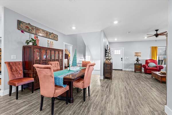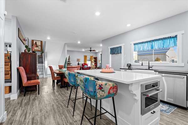 If you've been dreaming of a place with space, privacy, or you've been wanting your own homestead to raise animals, garden, and raise your kids to love the outdoors - this 3.5-acre property has it all. And ZERO restrictions. The main home was built in 2019 and has been updated throughout 2024-2025. The acreage is thoughtfully arranged with 4 fully fenced, gated fields and a detached guesthouse/accessory dwelling unit, creating a setup that works well for animals, guests, or separate living and workspace needs. Inside the main home, you'll find 3 bedrooms plus a finished attic bedroom with its own vent and thermostat, along with 3 full bathrooms. The layout feels warm and inviting with a propane gas-log fireplace (remote included) and an open kitchen featuring quartz countertops, a large island, farmhouse sink, gas stove, and built-in microwave. The primary suite is on the main floor with a walk-in shower and quartz countertops. Upstairs are two additional bedrooms, a full bath, and an attic/office space. Downstairs, the finished basement offers additional living area and includes an understair storm shelter. The garage also has a fully decked and insulated attic, gives you tons of extra storage. The property is equipped for practical, everyday living with: - Built-in water softener and filtration - Five frost-free water hydrants - Rainbird irrigation in the front yard - New AC unit (2024) - New well pump (2024) - Double metal roofing on every structure (Walker Roofing, 2024) - New faucets and carpet installed in 2025 Outdoor features expand the usability of the land even further. The barn is foam insulated and includes a large roll-up garage door with three additional steel entry doors. On the south side of the barn are two 12x12 horse stalls with swing gates, and nearby are four 24x24 outdoor animal pens equipped with solar lighting, 4x4 hog panels, and both individual and pass-through gates. The entire property is fully fenced with multiple access gates, allowing for a complete drive-around layout. A greenhouse and raised garden beds add even more functionality. AND 25% percent of mineral rights convey. To say this detached accessory dwelling unit is charming would be an understatement. Built in 2013, this fully finished living space has one bedroom and bathroom downstairs and two bedrooms upstairs. With a new mini-split (2024) and extra climate units, it's perfect for extended family, guests, or a private setup separate from the main home.