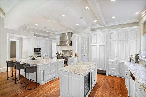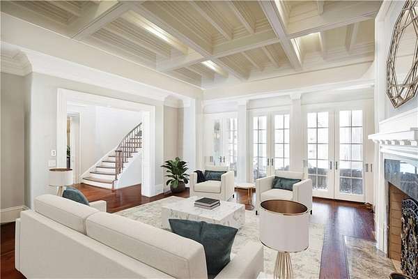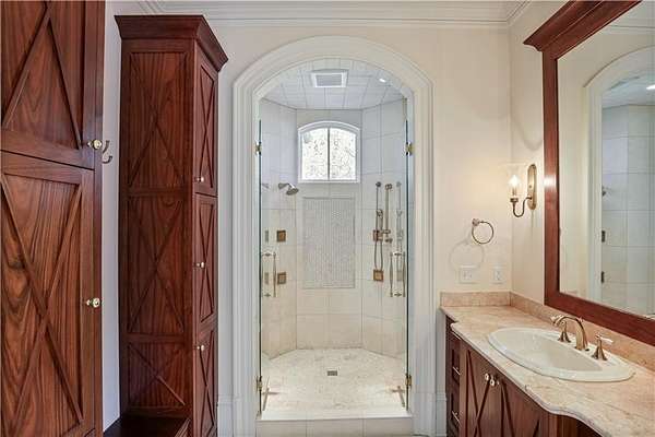 Located in prestigious Buckhead on a private 1.7-acre lot in Tuxedo Park, this beautiful four-sided brick estate home was designed by Brian Smith & built by RL Connelly & Co. Located off the street with a private sweeping driveway and courtyard that leads to the beautifully landscaped pool area and private, wooded grounds. An expansive floorplan with two-story foyer, splendid millwork, exquisite stone details, ornate coffered ceilings, five masonry fireplaces with onyx surrounds, dual staircases, and abundant natural sunlight. The chef's kitchen features cherry cabinets, natural stone countertops, a double island, Wolf appliances and is located adjacent to the butler's pantry, formal dining room that seats 12+, relaxing breakfast room and a 12.5 ft vaulted ceiling-keeping room with a fireplace and built-in bookshelves. The family room features an intricate coffered ceiling, fireplace, spacious seating area and a series of French doors that lead onto the covered patio and pool area. The master suite, located on the main floor, impresses with a palatial, light-filled bedroom with a sitting area, fireplace, enviable walk-in closets with custom cabinetry and a luxurious, spa-inspired bathroomfeaturing separate vanities, a soaking tub, and a marble shower. Upstairs, there are four secondary bedrooms with generous closets, ensuite bathrooms and a media room. The 6th bedroom and bathroom, located above the three-car gated access garage, is the perfect au pair or in-law suite. The finished Terrace Level is perfect for entertaining with an inviting bar, wine cellar and lounge or media viewing room, in-home sauna, and walk-out access to the heated pool, gazebo, and covered patio area. Located on iconic Habersham Road, this property offers unparalleled convenience to Atlanta's best schools, country clubs, shopping, dining spots, and nearby Chastain Park. Some rooms have been virtual staged. Virtual staging reflects change of paint color and furniture only. Taxes do not reflect Homestead Exemption.