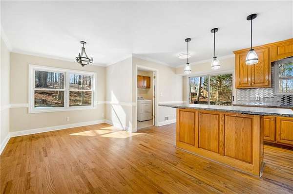 Rare opportunity in the heart of Suwanee within the North Gwinnett High School District! Approximately 5.22 acres lot and an existing four-sided brick ranch home with a finished basement. The spacious main level features a kitchen with breakfast area, separate laundry room, open-concept living and dining area, vaulted sunroom, deck, three generously sized bedrooms, two full bathrooms, and a convenient side-entry carport with easy kitchen access. The finished lower level offers a media room, second living area, full bathroom, and exterior entrance. Freshly painted interior and exterior. Situated on a private, wooded lot with no HOA, surrounded by established neighborhoods and nearby million-dollar homes. Conveniently located near Downtown Suwanee, George Pierce Park, shopping, dining, and top-rated schools. Ideal for renovation, expansion, or redevelopment-a must-see property with endless potential. Property sold AS-IS, WHERE IS. Seller has never occupied; no disclosures provided. No survey available.