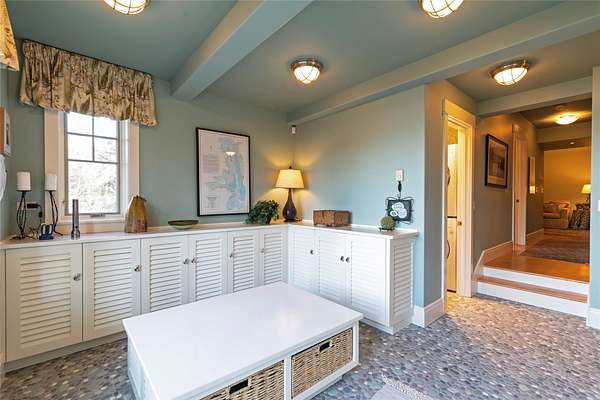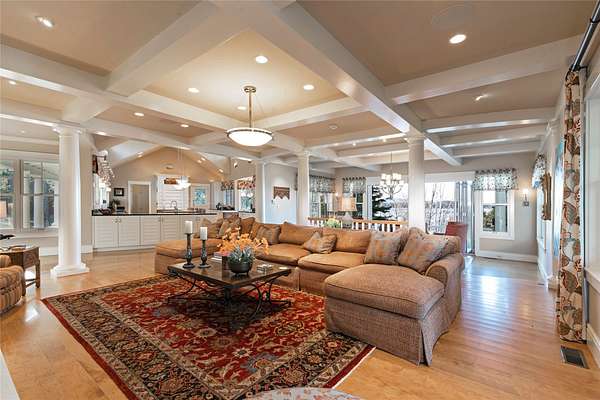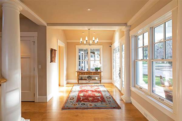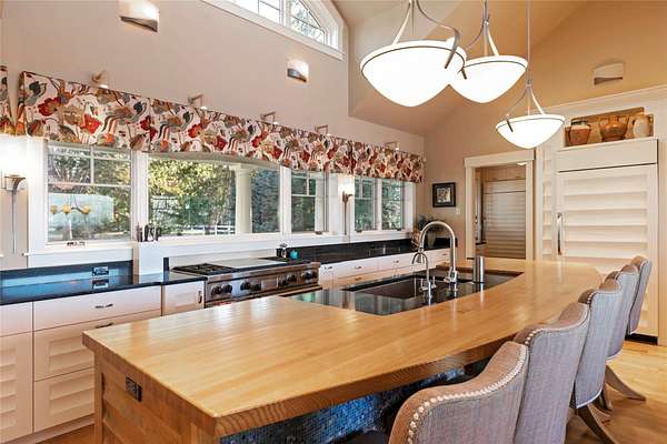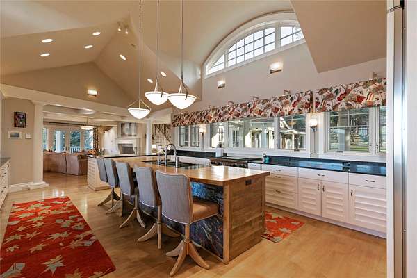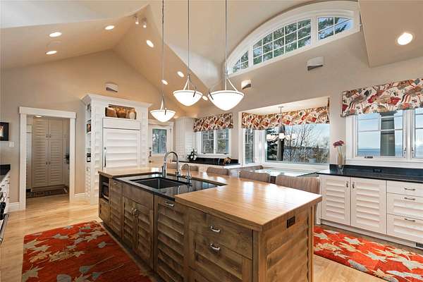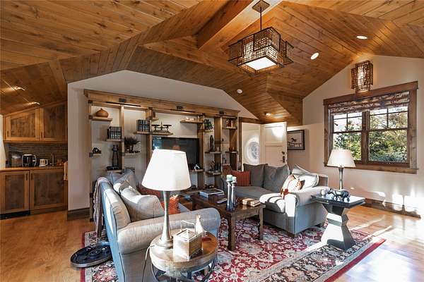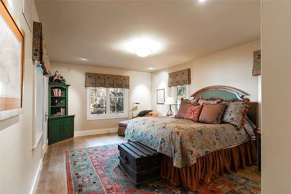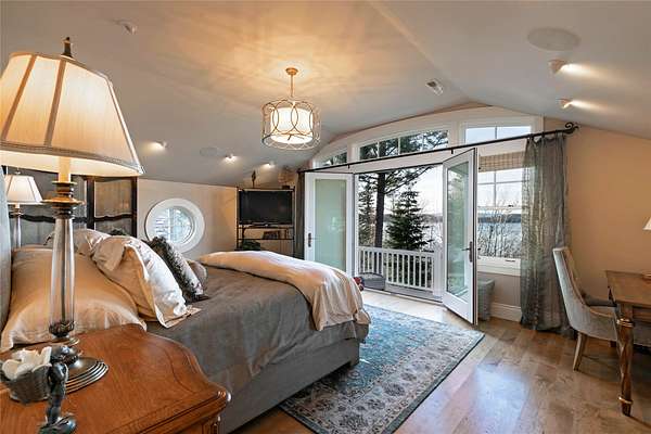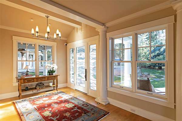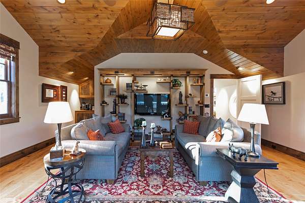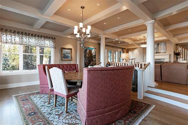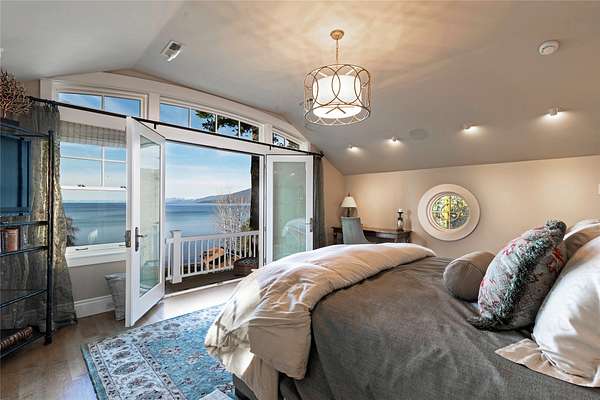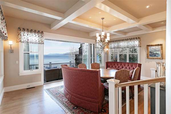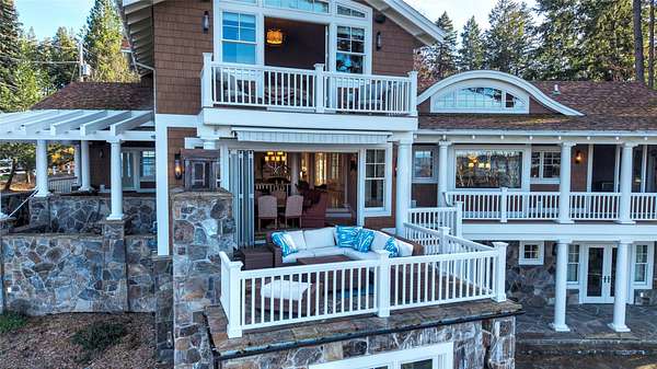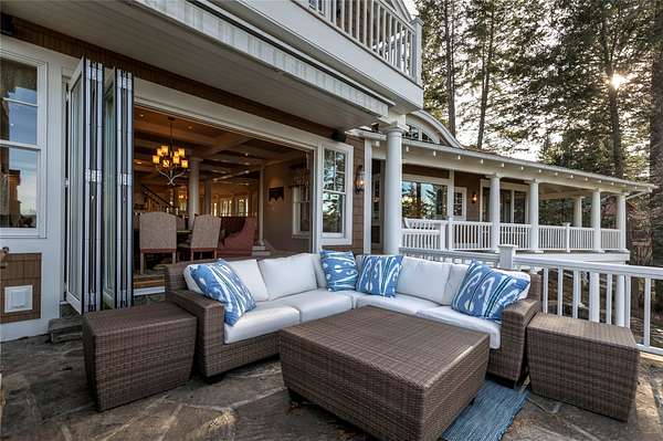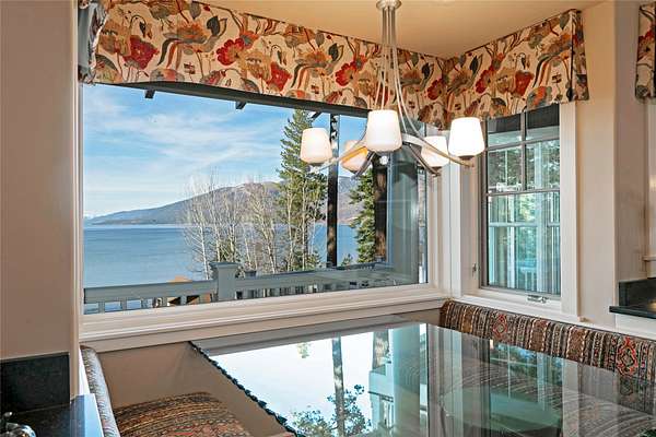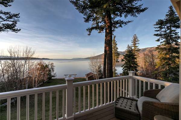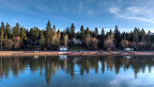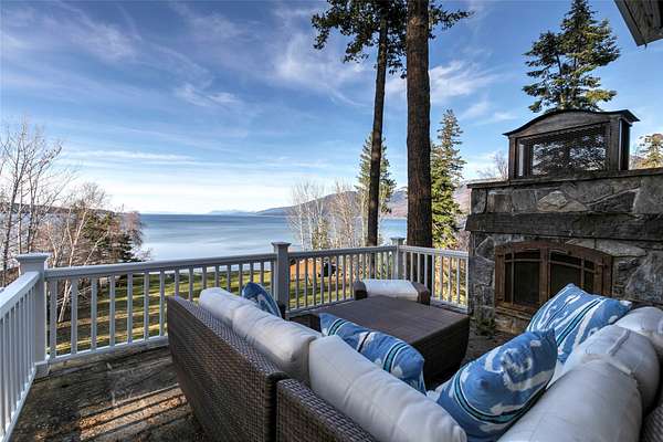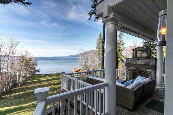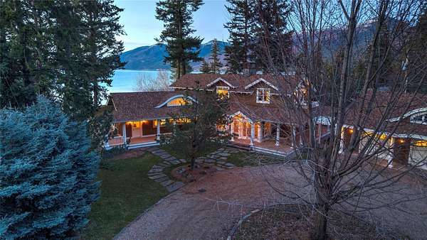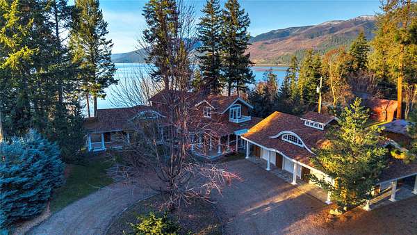Privately gated on 3.81 acres of coveted Finley Point, this exceptional Flathead Lake estate offers 151 feet of gradual pebbled shoreline and 5,934 square feet of custom-designed living space. With timeless Great Lakes and Cape Cod architectural influences, the residence is thoughtfully designed as a fully appointed lakeside retreat, offering unmatched privacy and luxury. The home features five bedrooms and four full and one half bathrooms, including a primary suite with a spa bath and custom glass steam shower. Interiors boast mountain ash hardwood floors, custom cabinetry, a hidden wine storage area, and two full laundry spaces. The expansive great room anchors the home with a wood-burning gas-assisted fireplace and seamless access to the screened porch for seasonal living. Entertaining is effortless in the open gourmet kitchen, outfitted with premium Sub-Zero refrigeration, a full Wolf cooking suite, Wolf warming drawer, and two Asko dishwashers. A NanaWall opens to a lakeside deck with an outdoor gas fireplace, connecting indoor and outdoor spaces perfectly. Technology and comfort are enhanced by an integrated Crestron system, whole-home audio, central air, forced air heating, and private well and septic systems. Outside, manicured grounds, a lakeside hot tub, stone fire pit, and private forested drive create an idyllic retreat. Waterfront amenities include a two-boat boathouse, newer iron-reinforced T-shaped dock, and ideal northern exposure for sun from sunrise to sunset. Included in the sale are a Cobalt A25 boat, golf cart, all furniture, and custom imported carpets. Strategically located between Missoula and Kalispell airports, this turnkey estate is perfectly suited to become a generational legacy property-an unmatched opportunity to own one of Montana's most coveted luxury waterfront homes.