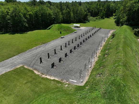 Along the front of the property is a 30 ft. berm accented with boulders and gated driveway to the shooting ranges along with the east and west sides are also 30 ft. berms. The professionally built gravel roads, parking areas and prop storage areas to all of the shooting ranges are designed to accommodate loaded tractor/trailer trucks.