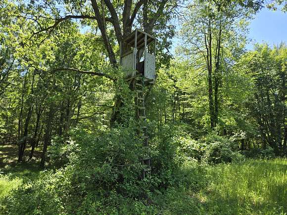 The back forty offers excellent deer and turkey hunting on the rolling terrain with mature timber, spring water swales, clover grass areas and features a two acre 27 ft. deep spring fed pond with native fish and is a hot spot for Fall goose hunting. An extensive trail system leads to the established ladder stands and 2 elevated blinds.