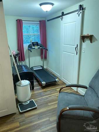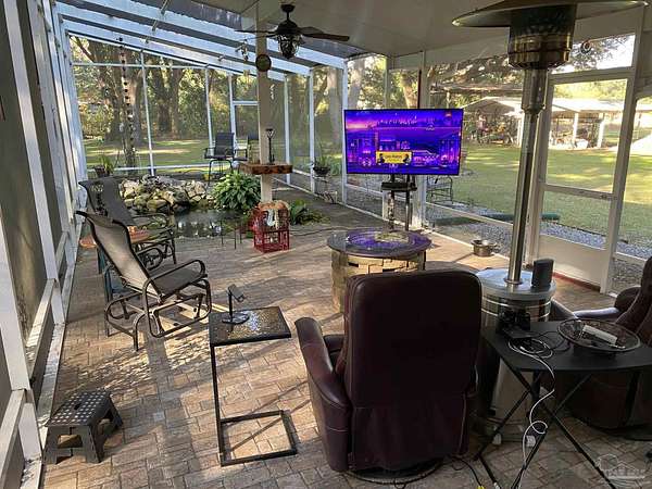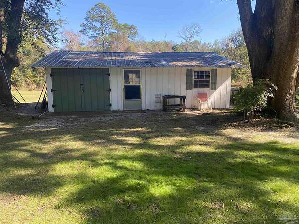 Your Paradise awaits! Nestled under stately oaks and natural surroundings, this 3-bedroom, 2-bath home offers more than just a place to call home ... It's a place to really live. With over 2 acres of land, 5 Heritage oaks, a pond with freshwater fish, a 25' x 40' workshop, 3 large canopies for car and equipment storage, a large screened-in porch, 16' x 50' in size, offering plenty of room for entertainment and activities, you will likely spend more time outside than in. There are 26 acres of undeveloped land that border the back of the property. The owners report that along with other wildlife, deer most often visit their backyard pond. This home was fully renovated in 2017. Although some original elements remain, most of the home is 'like new'. Both bathrooms have fully tiled showers and the primary bedroom features an oversized closet and office or studio area. This home also has an invisible fence that keeps their dogs within the borders of the property. While the property feels secluded and is mostly quiet, Bennett C Russell Elementary and Avalon Middle Schools are within 5 minutes, you are less than 10 minutes from a boat ramp that accesses Escambia River and Bay, and you can be in Pensacola, Milton or Pace in less than 15 minutes. Yes, the deer and fish shown in the photos are actually from the pond and property!