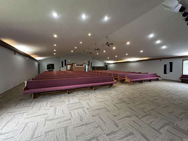 Spacious 10,000 sq ft building on 5.33 acres, located just minutes from Bloomington's east side. Formerly used as a church, this well-maintained property offers versatile interior space suitable for a variety of uses--place of worship, community center, educational facility, office space, or event venue. The main building sits on a 4-acre lot, with an additional 1.33-acre adjoining parcel that includes a playground area. Inside, you'll find a full kitchen and a large gathering hall in the finished basement, perfect for hosting events or group functions. The expansive grounds offer ample parking and a peaceful, rural atmosphere, all while being conveniently close to town. A unique opportunity for redevelopment or repurposing in a high-growth area with excellent accessibility. The property is zoned Conservation Residential 2.5 (CVR), which permits a variety of uses. Please refer to the attached document for full details.
