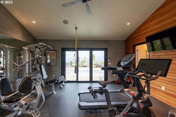 - Central Vacuum, Garage Door Opener, Hardwood Floors, High Ceilings, High Speed Internet, Separate Living Quarters Apartment Aux Living Unit, Sound System, Tile Floor, Vaulted Ceiling