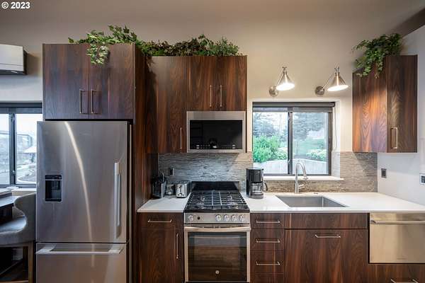 - Builtin Oven, Builtin Range, Builtin Refrigerator, Cooktop, Dishwasher, Disposal, Island, Pantry, Quartz, Range Hood, Stainless Steel Appliance, Tile