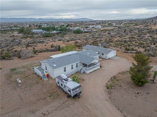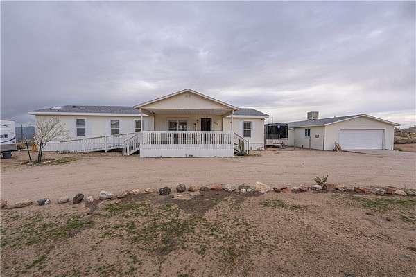 This lovingly cared-for 2002 doublewide manufactured home sits on 2.35 acres and is being offered by its original owner. With 1,769 sq. ft., 4 bedrooms, and 2 bathrooms, the home offers a comfortable, well-designed layout that has been thoughtfully maintained over the years. Need a home that comes with appliances? This one comes fully equipped with the washer, dryer, refrigerator AND 2 refrigerators and chest freezer in the garage Enjoy Arizona sunsets from the fully permitted wrap-around decks, perfect for morning coffee or unwinding at the end of the day. Inside, the kitchen features a double oven and ample space for everyday living or entertaining. The property also includes a large detached 25 x 60 garage, with a roll up door and a man door, ideal for a workshop, storage, or recreational vehicles. A pre-listing inspection has already been completed to support full disclosure and help ensure a smooth, transparent transaction for the next owner. With wide-open space, pride of ownership throughout, and a competitive price point, this property is ready to welcome its next chapter.