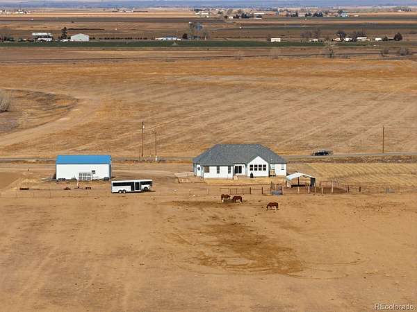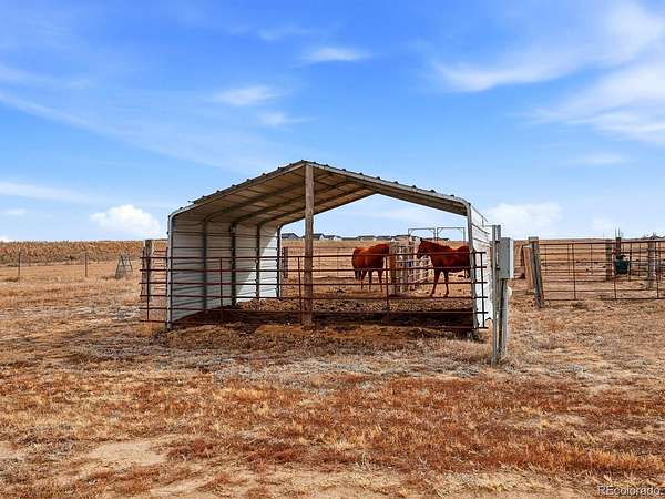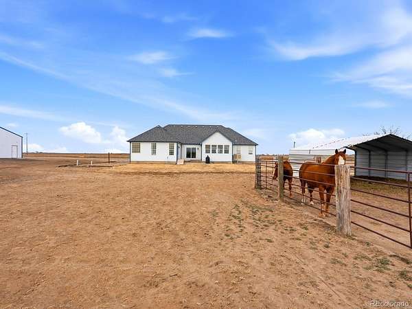 Exceptional 20-acre homestead located in unincorporated Wiggins, Colorado, thoughtfully set up for equestrian or country living. The property is fully fenced with pasture spigots, shelter, and ample room to roam, making it ideal for livestock, hobby farming, or those seeking wide-open space and privacy.