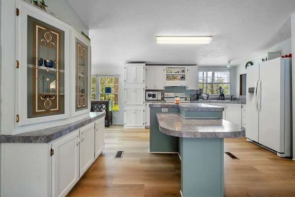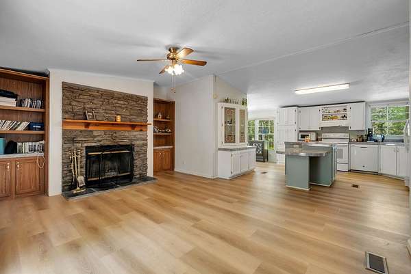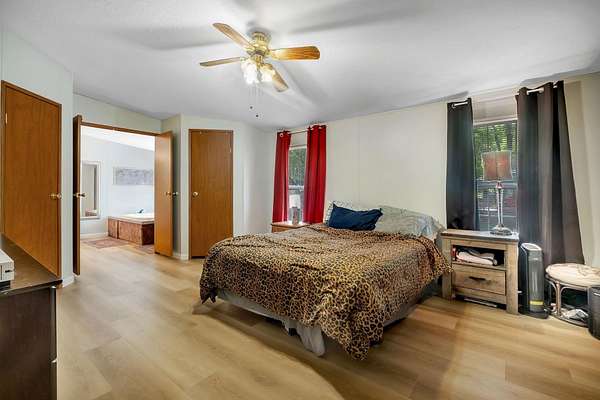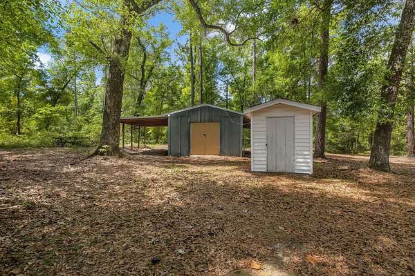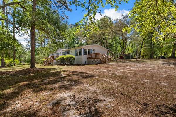 3 Acres of Peace and privacy. Located less than a mile to Lake Talquin this property offers it all. The well-maintained 3 bedroom 2 bath manufactured home features updated LVP flooring, fresh interior paint, and vaulted ceilings. A spacious floorplan includes a living room, separate family room with fireplace and built-ins, dining room, and an open, eat-in kitchen with island, and newer appliances. The large primary suite features double walk-in closets large bathroom with garden tub, walk-in shower and oversized double vanity. Outside, the land is partially cleared, fenced, and includes a pole barn for covered boat/car storage plus two sheds. This home is only a few minutes from Ben Stoutamire Park and the public boat ramp, enjoy world-class fishing and boating a short ride from your doorstep.