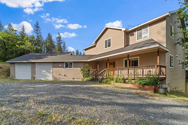 This updated 4-bed, 4 -bath home offers 2,907 sqft of living space on a peaceful 6-acre lot. Including a huge barn with an additional office space on the second level. Fresh paint and new laminate flooring on the main level create a crisp, modern feel. Vaulted ceilings and large windows fill the space with natural light and showcase stunning mountain views. The open layout is ideal for both relaxing and entertaining. Privately tucked away yet close to town, this property offers the best of both worlds. Highlights include a 1,000-sqft barn with a second-level office--great for storage, hobbies, or creative work. A 3-car garage provides ample room for vehicles, and a charming greenhouse supports year-round gardening. The abundant water supply is ideal for lush landscaping or agriculture. This home has incredible views of the valley and mountains - Don't miss out! Priced to sell!