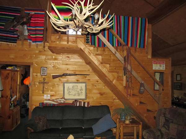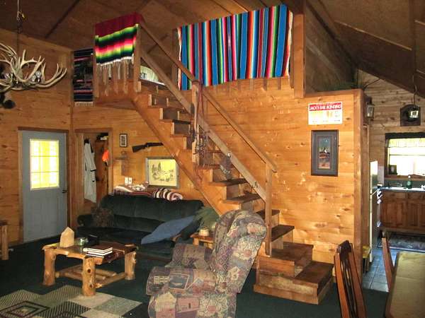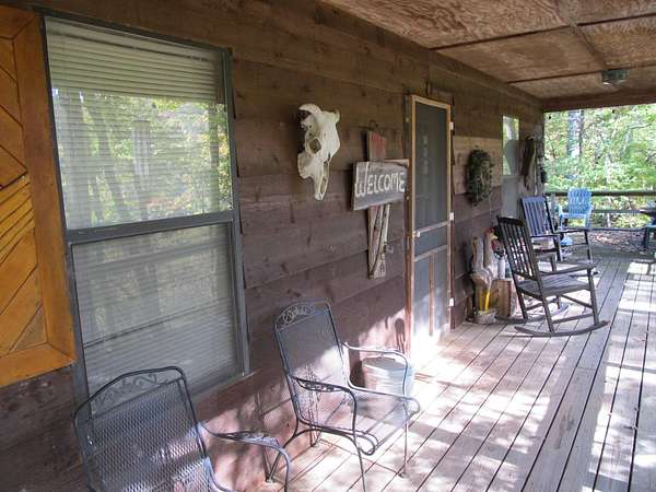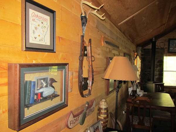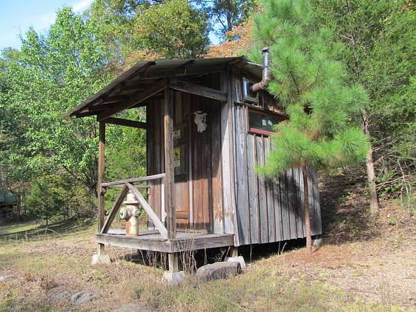 This exceptional 260-acre retreat lies between Huntsville and Kingston, Arkansas, in the scenic Wharton Creek and Reynolds Mountain area of Madison County. A rare find, this property offers seclusion, natural beauty, and everything an avid outdoorsman could hope for. The rustic cabin is thoughtfully built with approximately 1,088 square feet on the main level, plus a spacious upstairs sleeping loft. The inviting full-width covered front porch is perfect for rocking chairs and quiet mornings, while a large treated deck provides the ideal spot for visiting with friends, spinning tall tales, or grilling after a long day outdoors. Inside, the living area is open and airy with a vaulted ceiling, finished in warm wood tones, and centered around a cozy corner wood stove. The cabin is wired for electricity and can easily be powered by a generator. Downstairs includes a large bedroom, while the loft offers plenty of additional sleeping space for family or guests. Set on the edge of a stunning overlook, the cabin offers sweeping views of the creek and bottomland below. Gusses Creek, a year-round stream that feeds into the Kings River, winds through the property for roughly three-quarters of a mile. The creek features a picturesque swimming hole surrounded by large rock formations - ideal for relaxing, sunbathing, or fishing for small stream species. For hunters, this is truly a dream property. Deer, black bear, wild turkey, and countless other species call this land home. The terrain varies from flat creek bottoms to rolling hills and rugged slopes, providing diverse habitats and ideal hunting conditions. Several established food plots and a serene pine grove carpeted in soft needles add to the property's charm. Bordering a 2,000-acre private landholding and other large tracts, this location offers privacy and vast wilderness while remaining conveniently close to town. Properties like this rarely come to market - a true Ozark Mountain gem offered at $949,500.