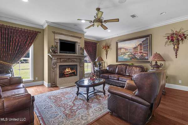 Welcome to 3375 N. Ratliff Road - A Distinguished Hinds County Estate Experience refined Southern living in this exceptional 11.3-acre gated estate located within Clinton's award-winning school district. Designed for both luxury and functionality, this custom-built residence offers an impressive 7 bedrooms, 5 full baths, and 3 half baths, tailored for large families, guests, and grand-scale entertaining. Inside, you'll find two spacious offices, dual laundry rooms, a home gym, and two theater/media rooms for private screening or recreation. The chef's kitchen features premium Wolf appliances, while Mississippi Ironworks exterior doors and dual staircases add a statement of craftsmanship and distinction. Outdoors, the property rivals a private resort with a heated gunite pool and spa, a 1,000 sq. ft. pool house perfect for entertaining, and a stocked pond with a covered pavilion built for unforgettable gatherings. Nestled in the back corner of the property, a rustic area that offers a peaceful escape complete with two fire pits and generous seating areas. A detached four-car garage with shiplap walls and abundant storage completes this rare offering. This is more than a home-it's a lifestyle and an opportunity. Schedule your private tour of 3375 N. Ratliff Road today and discover its unmatched potential.