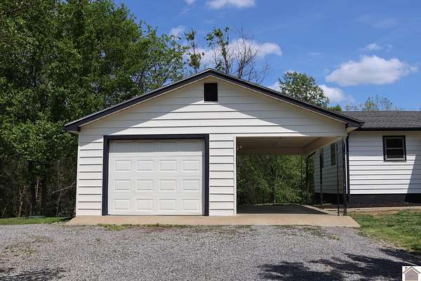 3 bed, 1 bath home sitting on just under 3 acres in a quiet, private area with no close neighbors. Located about 10 minutes from Kentucky Lake and a short drive to town. The home has been mostly remodeled, with a few finishing touches left, giving you a chance to make it your own. One-car garage/carport for covered parking. The land offers a nice front yard, a large backyard, and some woods for added privacy, with plenty of space if you want to build a shop or expand later. Currently on city water with a working well also on site. Hard to find a setup like this with acreage, privacy, and usable space. Good fit for a first home, weekend place, or someone wanting a quieter setup with room to grow.