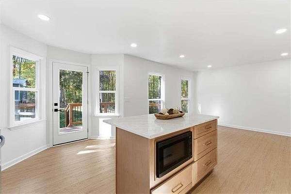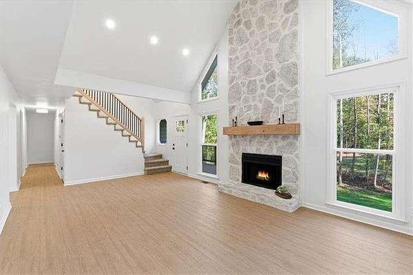 PRICED TO SELL!! MUST SEE INSIDE! Welcome to this like-new, completely renovated home that perfectly blends modern comfort with serene country living. Nestled on 1.79 private acres, this 4-bedroom, 4-bath residence offers an open, airy floor plan filled with natural light and high-end finishes throughout. Step inside to a bright 2-story living room with a stunning floor-to-ceiling stone fireplace, overlooked by an upstairs loft. The gourmet kitchen is a chef's dream, featuring brand-new stainless steel appliances, quartz countertops, a large island, and plenty of space for entertaining. The kitchen and dining area flow seamlessly to the oversized back deck with peaceful views of the private backyard. The main level offers a spacious primary suite with a luxurious ensuite bath boasting dual vanities, a beautiful large tiled shower, and quartz counters. Two additional bedrooms and a full hall bath complete the main floor. Upstairs, you'll find another bathroom and generously sized bedroom with a huge walk-in closet-perfect as a second primary suite, fourth bedroom, or even additional living space. The finished basement provides even more flexibility with a large bonus/media room, full bathroom, and a beautifully designed laundry/mudroom conveniently located off the large two-car garage. With additional large shed in the backyard this home offers plenty of room for all your storage needs. This home has been thoughtfully updated from top to bottom: freshly painted inside and out, all new carpet and LVP flooring, new decks front and back, brand-new architectural roof, new gutters, all new energy-efficient windows, all new stainless steel appliances, plus fully renovated kitchen and bathrooms. Located just minutes from the Atlanta Yacht Club and Galt's Ferry Public Access at Lake Allatoona, you'll enjoy the best of lake living with easy access to I-75. Downtown Acworth and Downtown Woodstock are also close by, offering fantastic shopping, dining, and entertainment. Here, you'll find the perfect blend of privacy, convenience, and modern living.